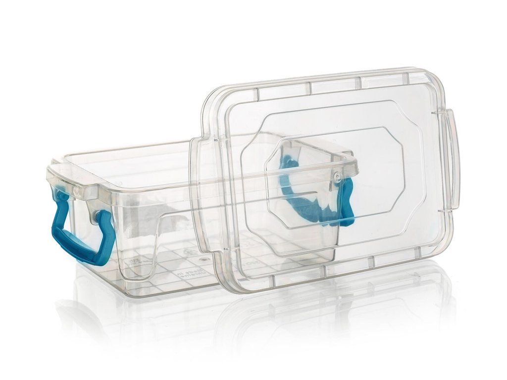 barva: transparentní box, tyrkysová madla