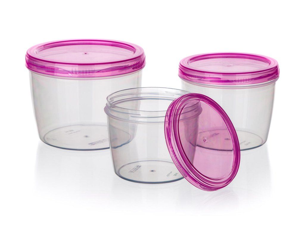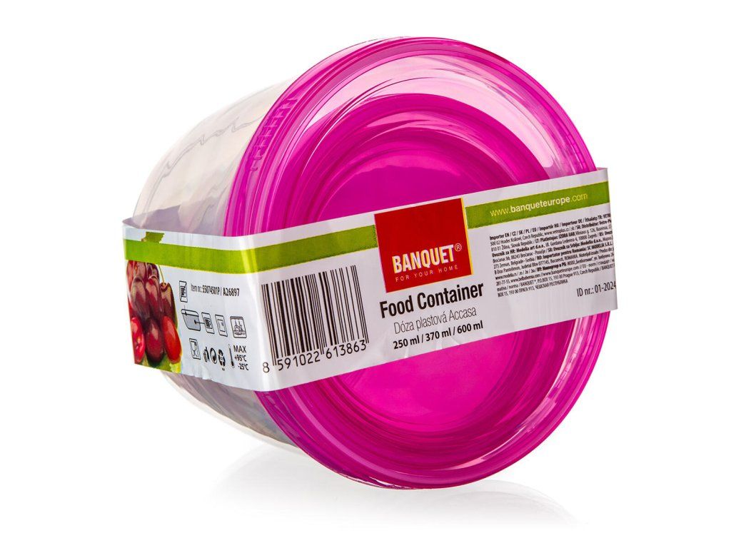 Sada plastových dóz ACASSA, ve třech velikostech 250 ml, 370 ml a 600 ml, je vhodná pro skladování potravin a hotových jídel.