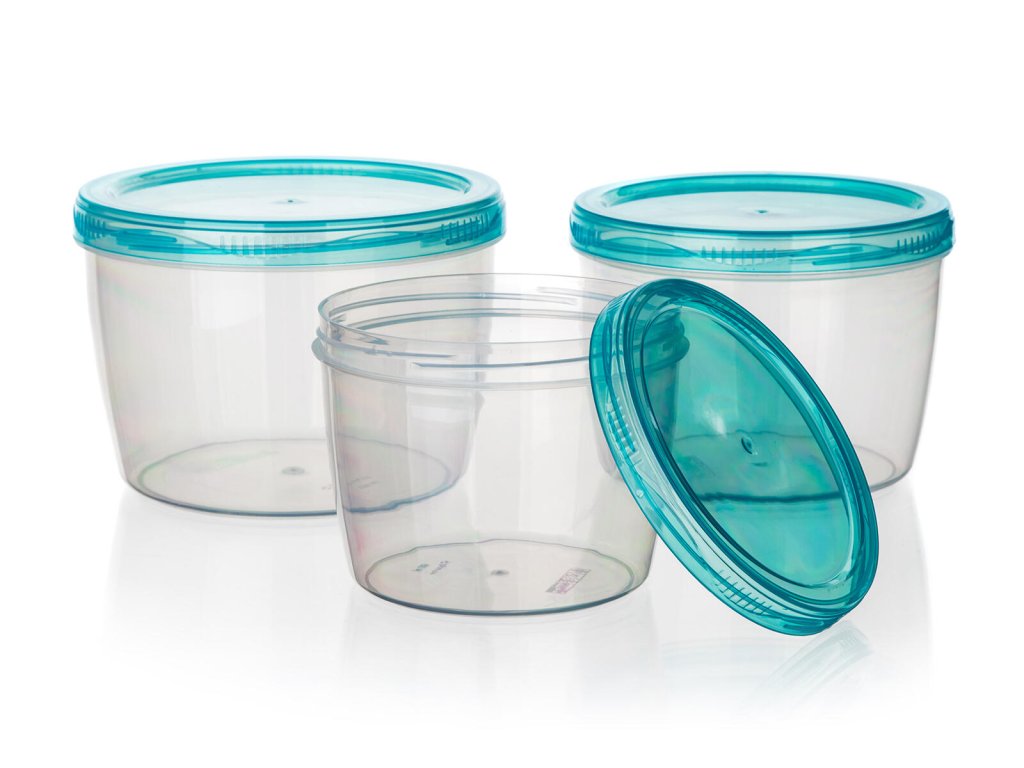 Sada plastových dóz ACASSA, ve třech velikostech 600 ml, 880 ml a 1180 ml, je vhodná pro skladování potravin a hotových jídel.