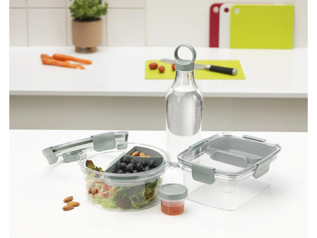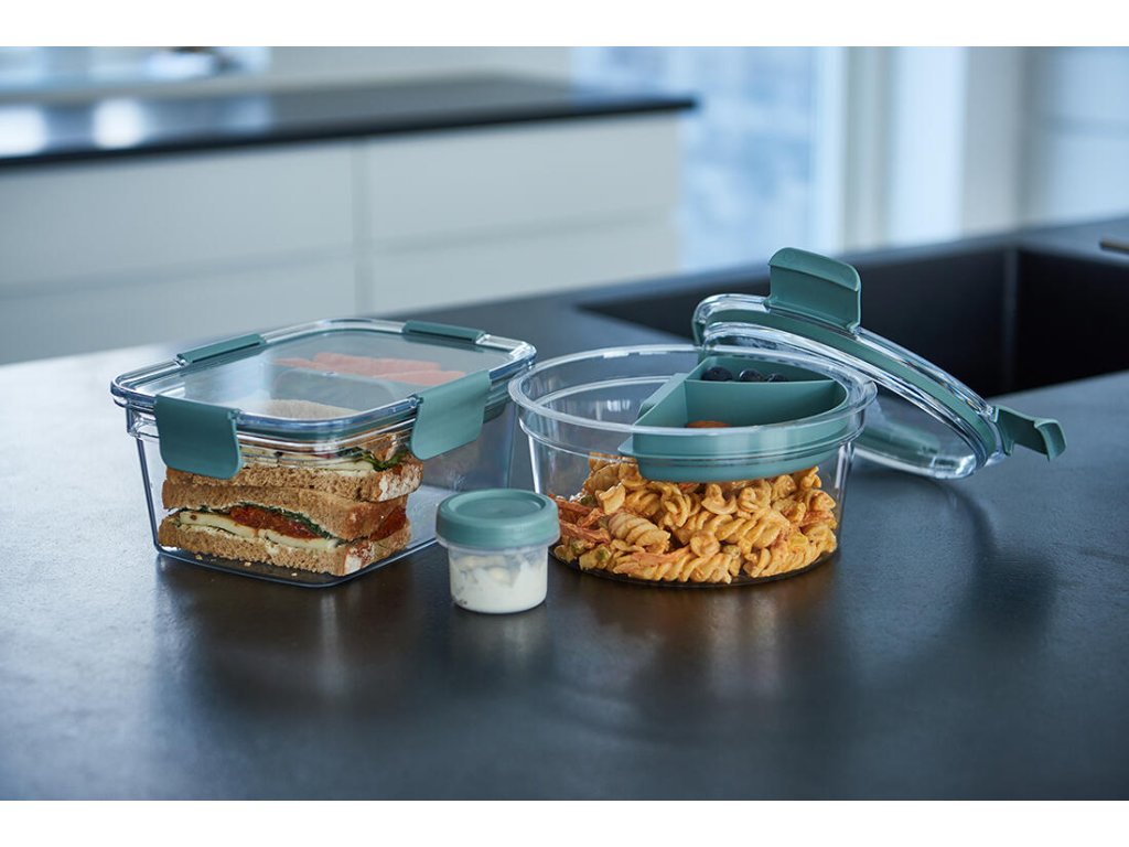 Do menší misky, která je oddělená od vnitřní části boxu, můžete uložit např. olivy, sýr nebo krutony.