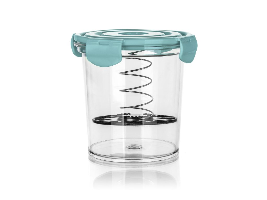 Zatlačením víka s klipy, opatřené pružinou, zamezíte přístupu vzduchu k potravinám.