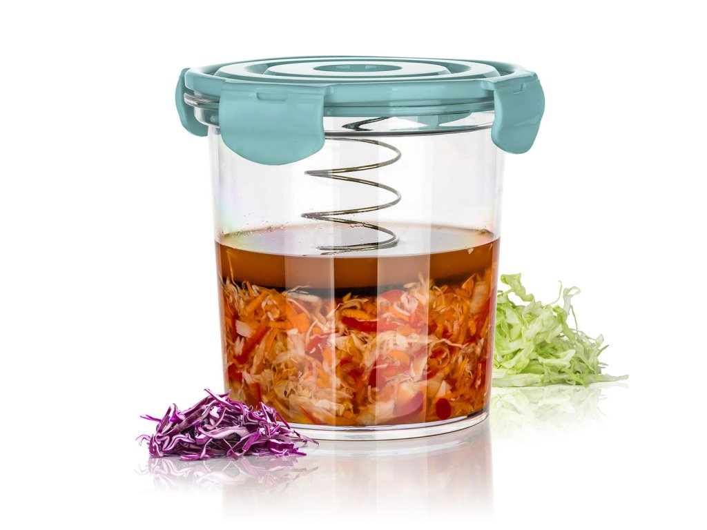 Nakládané potraviny vložte do nádoby, zalijte vodou nebo lákem.