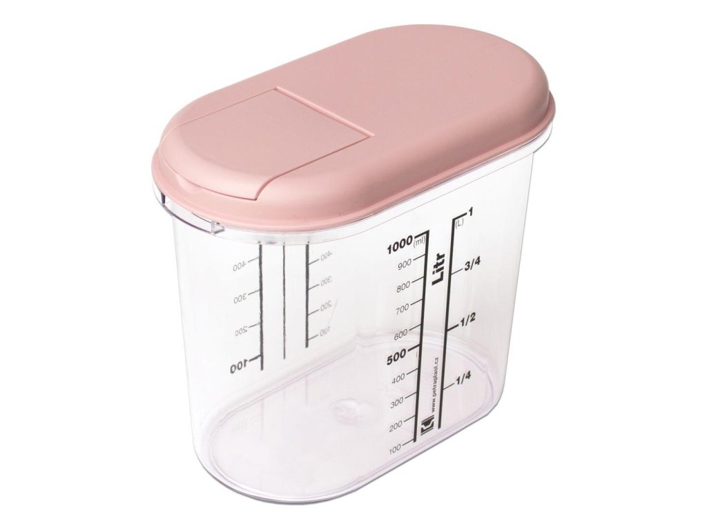 Dóza na sypké potraviny 1 l, oválná s potiskem, PH mix barev, otevírací víčko.