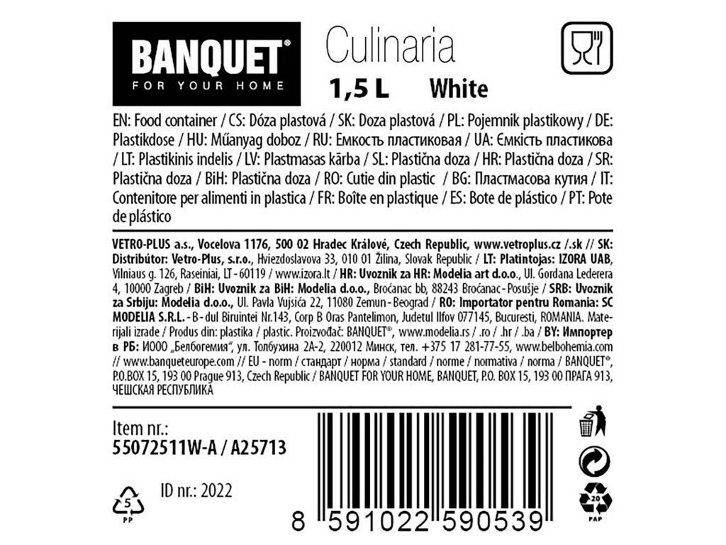 Dóza na sypké potraviny 1,5 l, PH, otevírací víčko BÍ.