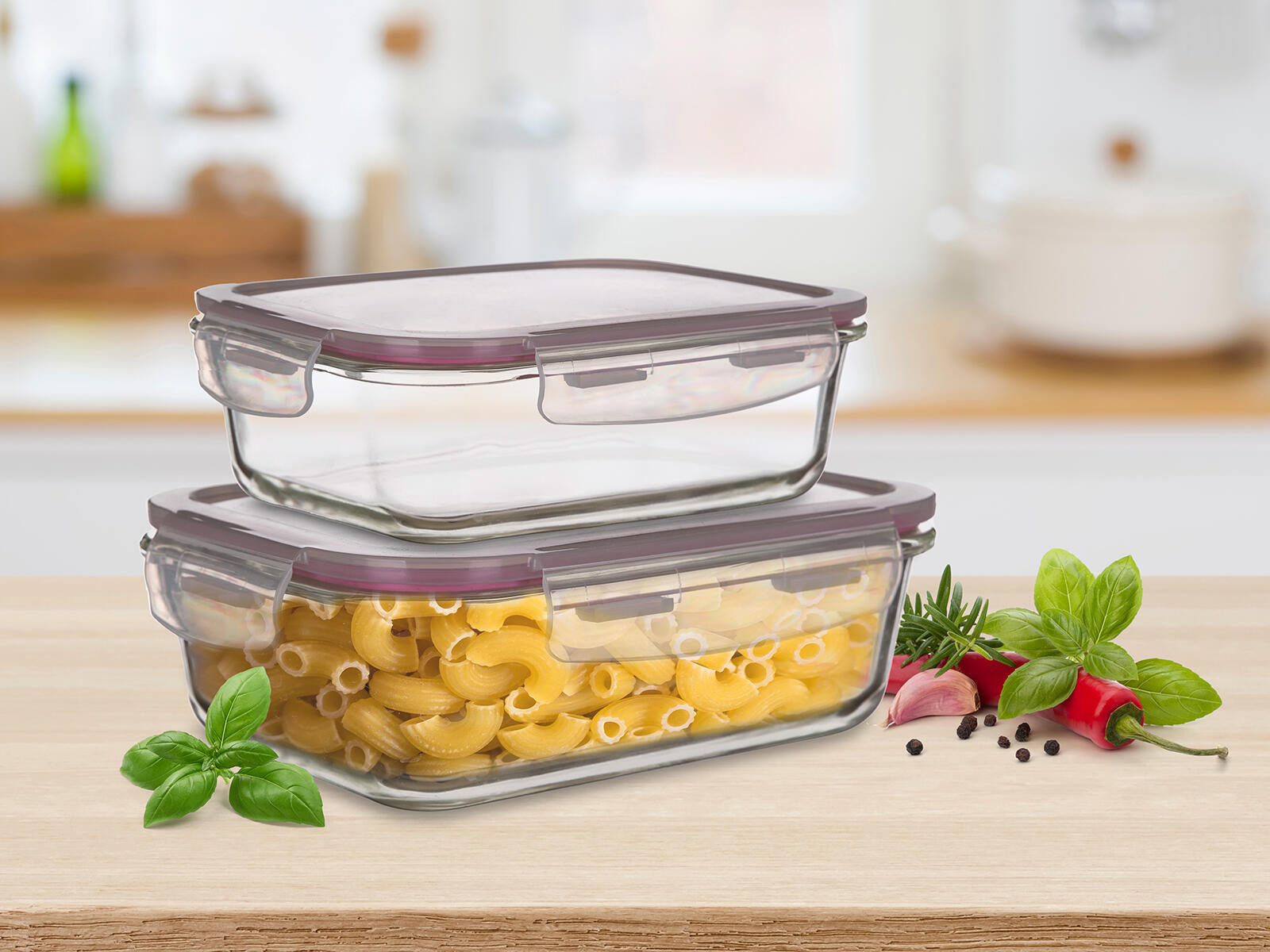 Dóza obdélníková, sada 2díl. (0,55, 0,95 l), skl. + PP víčko.