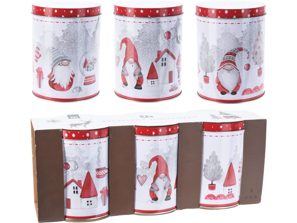 dóza plechová kulatá VÁNOČNÍ pr.10,5x14cm sada 3díl.