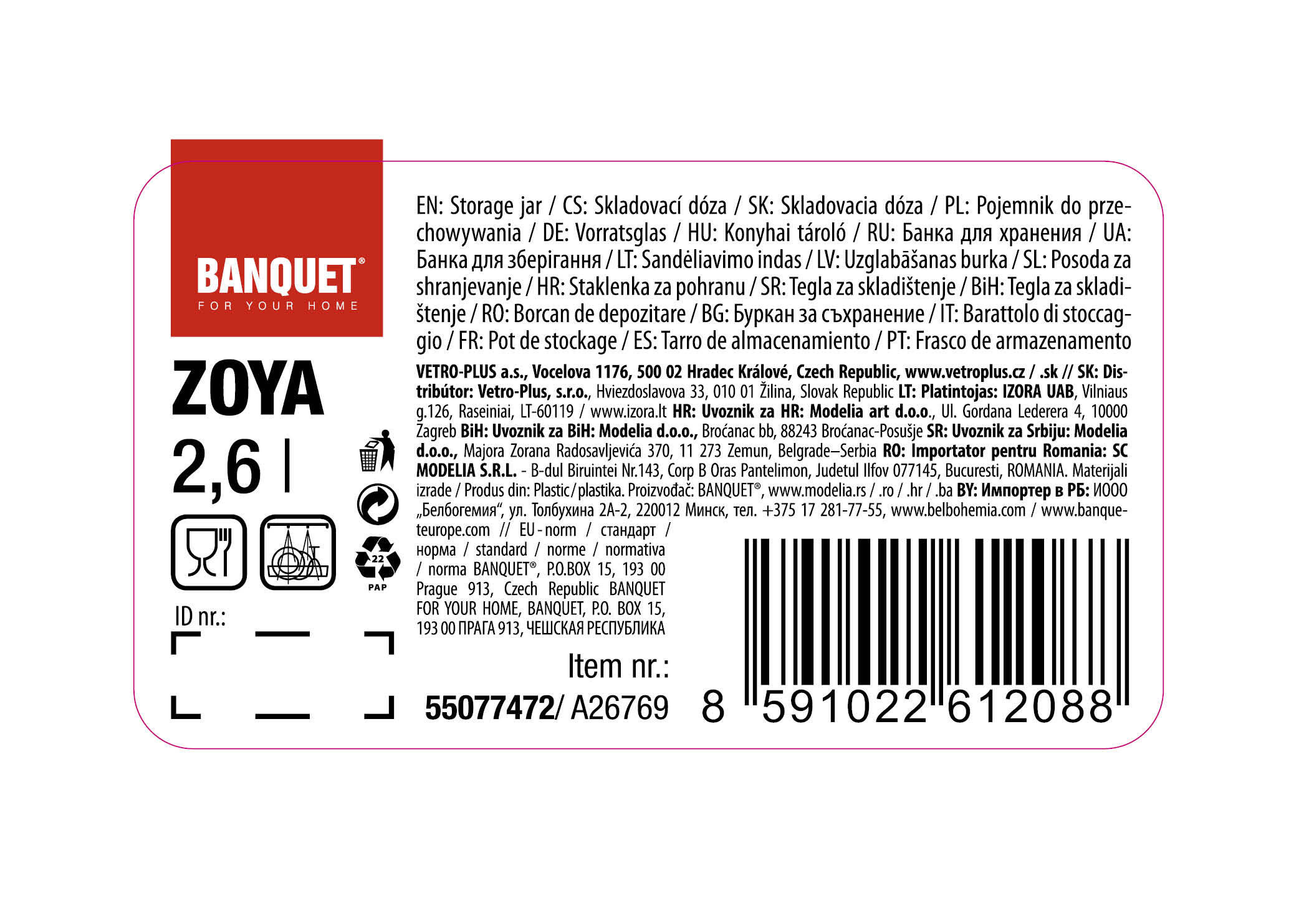 Dóza s uchem 2,6 l, ZOYA, PH.
