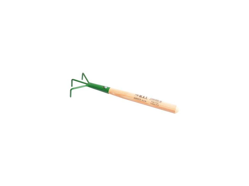 Lehký a odolný kovový drápek s dřevěnou násadou je vhodný pro běžné práce na zahrádce.