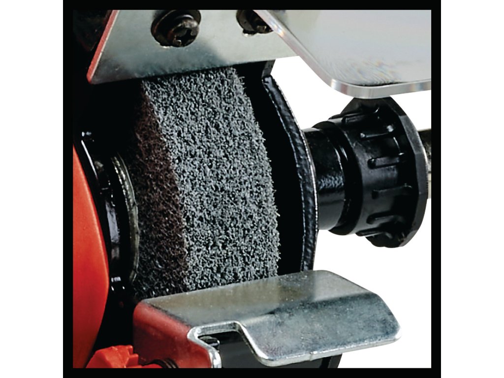 Bruska dvoukotoučová TC-XG 75 Kit Einhell je flexibilní pro využití široké škály nástrojů: pro vrtáky a frézy, řezné kotouče a dláta, pro nůžky, nože a čepele. Ohebná hřídel umožňuje precizní a přesnou práci. Rychlost otáček lze snadno přizpůsobit jakémukoliv úkonu. Díky rozsáhlému příslušenství, které je součástí sady Einhell, lze dvoukotoučovou brusku snadno a bezpečně používat také pro řezání, čištění, leštění a broušení. 4 gumové nožičky poskytují spolehlivou stabilitu s nízkými vibracemi. Nastavitelné pracovní podpěry usnadňují manipulaci s dvoukotoučovou bruskou. Štít na ochranu proti jiskrám je snadno nastavitelný bez potřeby dalšího nářadí. Dlouhá životnost díky robustní kompaktní kovové konstrukci. Dvoukotoučová bruska má hřídel uloženou v kuličkových ložiskách pro přesný provoz bez pohybu. Pro bezpečný provoz je po stranách ochranný kryt uzavřen.Doplňkové parametry