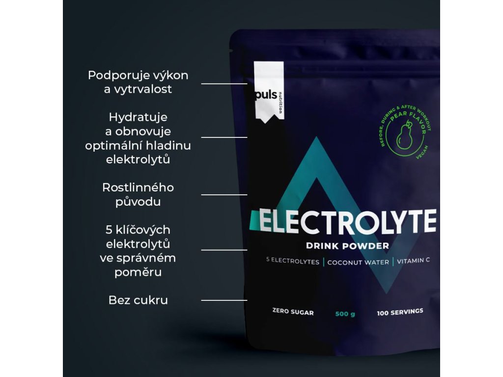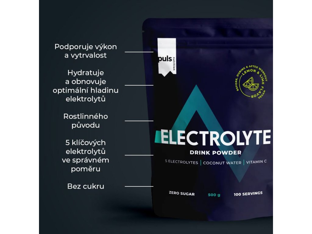 Optimalizujte hydrataci a výkon. PULS Electrolyte prášek je ideálním řešením pro udržení správné hydratace. Tato formule bez obsahu cukru poskytuje dokonale vyváženou směs pěti esenciálních elektrolytů – hořčíku, vápníku, draslíku, chloridu a sodíku – tedy klíčových minerálů nezbytných pro udržení optimální rovnováhy tekutin a podporu svalové funkce při intenzivní aktivitě. Smíchejte s vodou a vychutnejte si osvěžující citronovo-limetkovou chuť. Lze užívat během nebo po tréninku, při fyzicky náročném pracovním dni, po saunování nebo v horkých dnech.