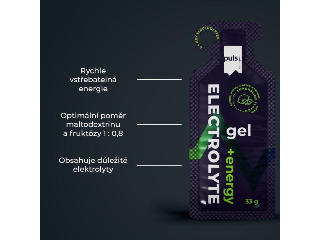 Podpora vytrvalostního výkonu. Zajistěte si optimální hydrataci s gelem PULS Electrolyte +energy. Tento hotový gel je ideální volbou pro hydrataci organismu a doplnění elektrolytů. Elektrolytový gel je navržen pro optimalizaci výkonu při vytrvalostních sportech, ale ocení jej každý, kdo potřebuje doplnit ztracené elektrolyty a energii a udržet rovnováhu tělesných tekutin.
