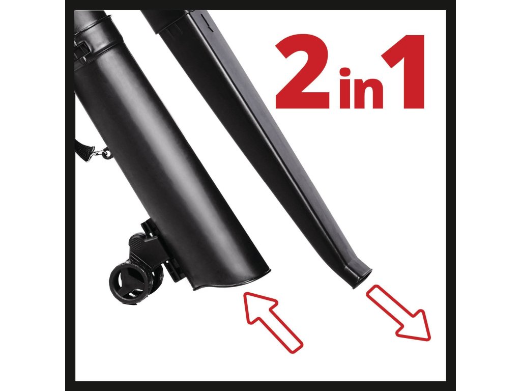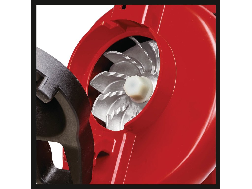 Elektrický vysavač listí Einhell GC-EL 3000 E je spolehlivým a výkonným pomocníkem pro odstraňování listí a lehkých materiálů na zahradě, na dvoře a na pozemku. Díky svému vysokému výkonu 3 000 wattů a své nízké hmotnosti je tento přístroj ideální pro cílené a efektivní použití. Díky úzké foukací trubici tak může být dosaženo vysoké rychlosti vzduchu až 300 km/h, díky čemuž lze účinně a cíleně přesouvat a shromažďovat nečistoty. Široká sací trubice s maximální sací kapacitou 840 m³/h má oproti tomu dostatek místa a energie pro nasátí a tím i odstranění shromážděného materiálu. Příprava obou funkcí se provádí bez použití nářadí, a je tak snadná a rychlá. Díky integrované funkci drcení je materiál automaticky rozdrcen v poměru 15:1. V důsledku toho je nutno sběrný vak vyprazdňovat mnohém méně často a listí lze lépe kompostovat. Kolo ventilátoru vyrobené z hliníku je robustní a odolné. Prostřednictvím elektronické regulace otáček lze podle potřeby přesně dávkovat sací a foukací výkon. Při nižší rychlosti vzduchu lze snadno smést listí např. na skalkách, aniž by byl současně smeten jiný materiál. Pomocí vysoké rychlosti lze např. v krátkém čase zpracovat např. větší plochy. Dvě výškově nastavitelná vodicí kolečka zajišťují na chodnících, trávnících a v obtížnějším terénu pohodlí při práci a ochranu před bolestí zad. Bezpečnost poskytují čisticí otvor s bezpečnostním spínačem a integrovaný držák kabelu pro odlehčení tahu. 45l sběrný vak má okénko pro kontrolu stavu naplnění. Nastavitelná přídavná rukojeť a nastavitelný popruh i ergonomická rukojeť zajišťují optimální rozložení hmotnosti a pohodlnou manipulaci i při delším používání bez přerušení.