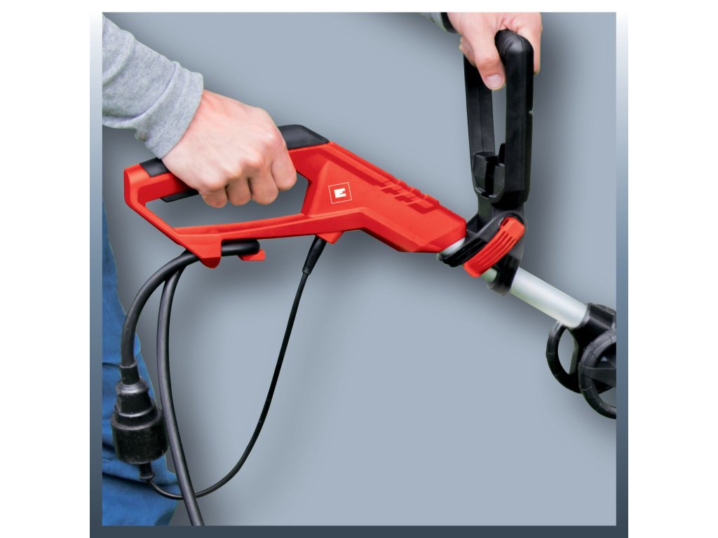 Vyžínač GE-ET 5027 je praktický a velmi výkonný přístroj, které umožňuje snadné posekání těžko přístupných míst pro dosažení dobře udržované zahrady. Díky hlavě motoru, kterou lze pro dosažení pohodlného sečení na svislých plochách otáčet o 90° a naklápět do 5 poloh, je přístroj univerzálně využitelný. Vyžínač GE-ET 5027 má robustní univerzální motor. Jeho plynule posuvné teleskopické madlo s nastavitelnou přídavnou rukojetí umožňuje pohodlné obouruční vedení a přesné přizpůsobení velikosti těla pro eliminaci únavy při práci. Kryt a přídavná rukojeť jsou vyrobeny z vysoce kvalitního, houževnatého plastu. Sečení pomocí jedné struny zaručuje čistý vzhled posekané plochy a umožňuje podávání struny prostřednictvím automatického krokovacího režimu. Pomocí vodicího kolečka lze dokonale posekat okraje trávníků a záhonů. Praktická ochrana proti nechtěnému posekání květin zajišťuje bezpečnou vzdálenost od milovaných květin a tím i zachování krásného vzhledu zahrady. Přívodní kabel vyžínače je chráněn proti opotřebení držákem kabelu pro odlehčení tahu.