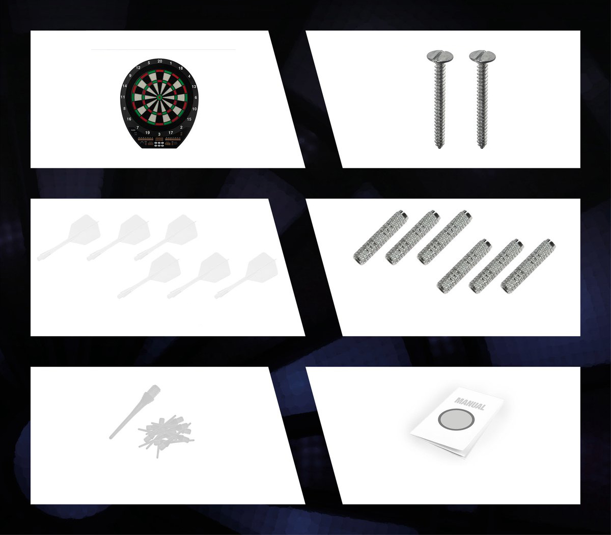 - Obsah balení: Elektronický terč, 6 softtip šipek (2 sady), 24 náhradních softtip hrotů