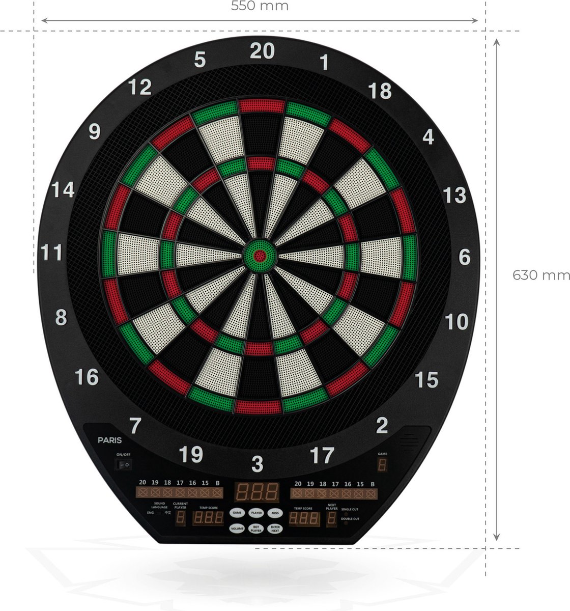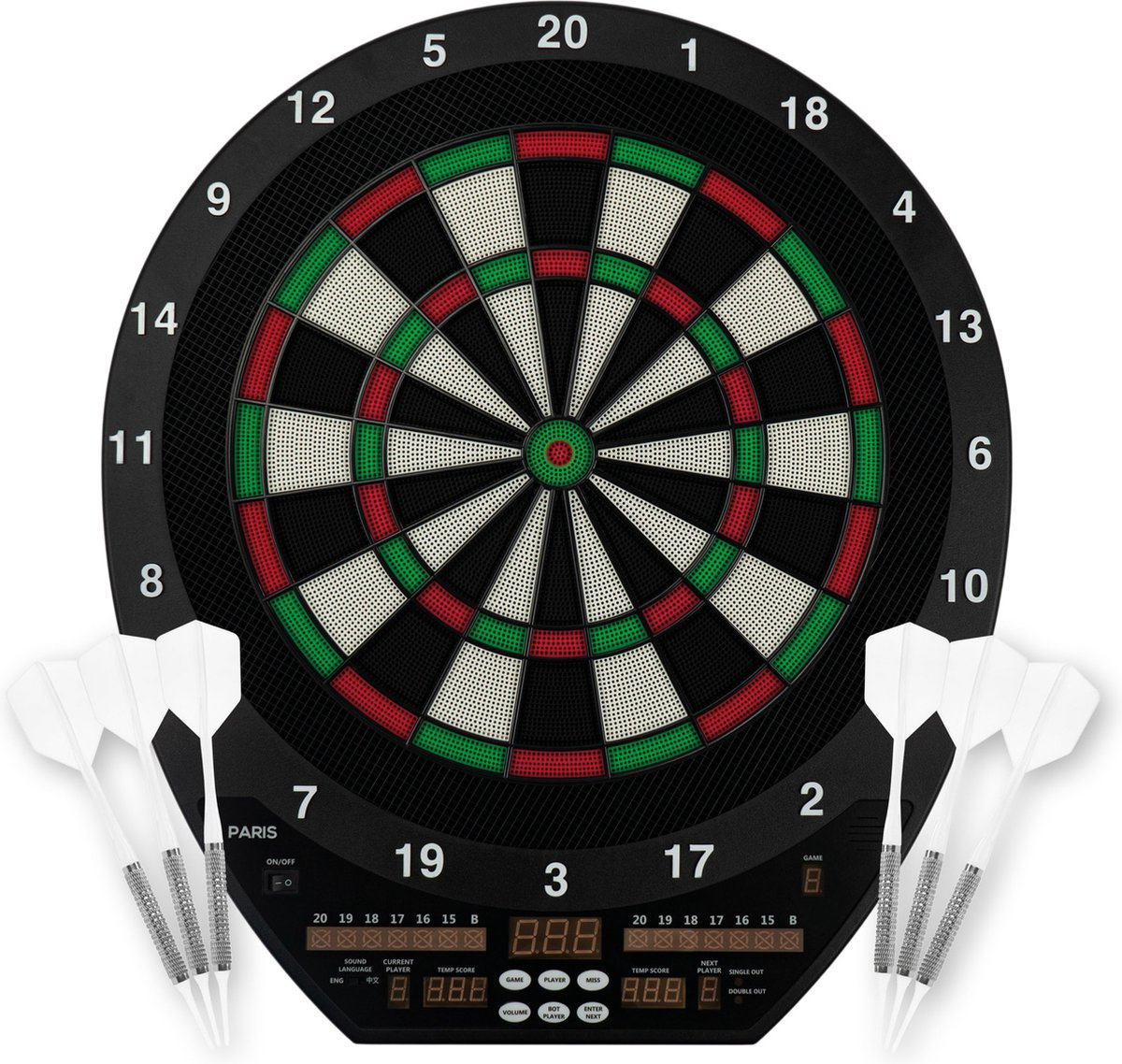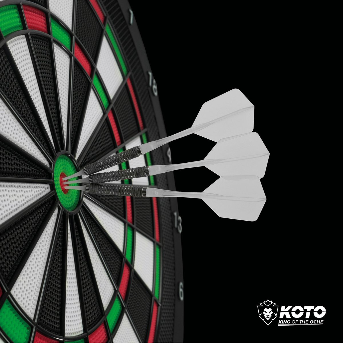 Elektronické šipky KOTO Paris jsou vyrobeny z odolného materiálu, který zajišťuje dlouhou životnost. Díky tenké spider konstrukci je riziko odrazů (bouncers) nižší než u běžných šipkových terčů. Segmenty mají 5 otvorů na každém double a triple, což zvyšuje šanci na vyšší skóre. Terč je určen pouze pro hru se softtip šipkami.