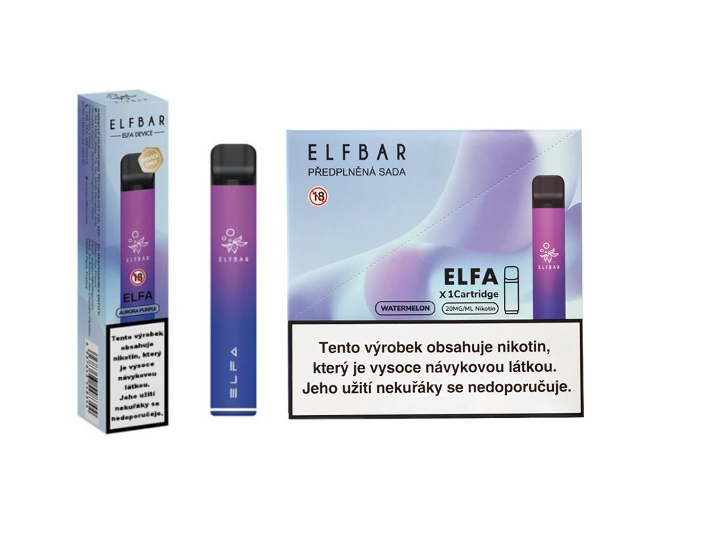 Elf Bar Elfa POD Kit elektronická cigareta, tvořená integrovanou baterií s kapacitou 500 mAh, kterou je možné dobíjet pomocí USB-C. Ve vrchní části těla této e-cigarety je otvor pro vložení Elf Bar ELFA Podů. Elf Bar Pody jsou již předplněné 2ml e-liquidu s obsahem nikotinové soli a stejné příchuti jako je u jednorázových e-cigaret Elf Bar a proto chutnají naprosto autenticky. Elf Bar POD se s tělem spojí pomocí magnetů a je okamžitě připraven k použití. Elektronická cigareta Elf Bar Elfa je revoluční zařízení, které spojuje výhody jednorázových e-cigaret a zároveň mírní jejich nevýhody, díky přijatelnější ceně a ekologičtějšímu způsobu vapování, kdy stačí pouze jedno zařízení/baterie pro tisíce potahů = šetříte tak životní prostředí. Příchuť Elfa PODu: Watermelon Balení obsahuje 1 nabíjecí elektronickou cigaretu + 1 POD Balení 10ks (10x cigareta s podem - kartonek)
