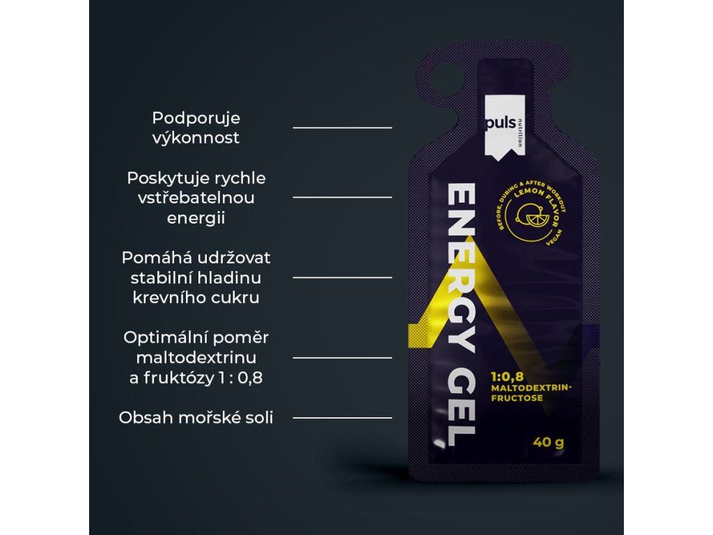 Puls Energy Gel podporuje výkon při vytrvalostních sportech s dlouhým trváním, jako je běh, cyklistika nebo triatlon. Osvěžující citronová příchuť.