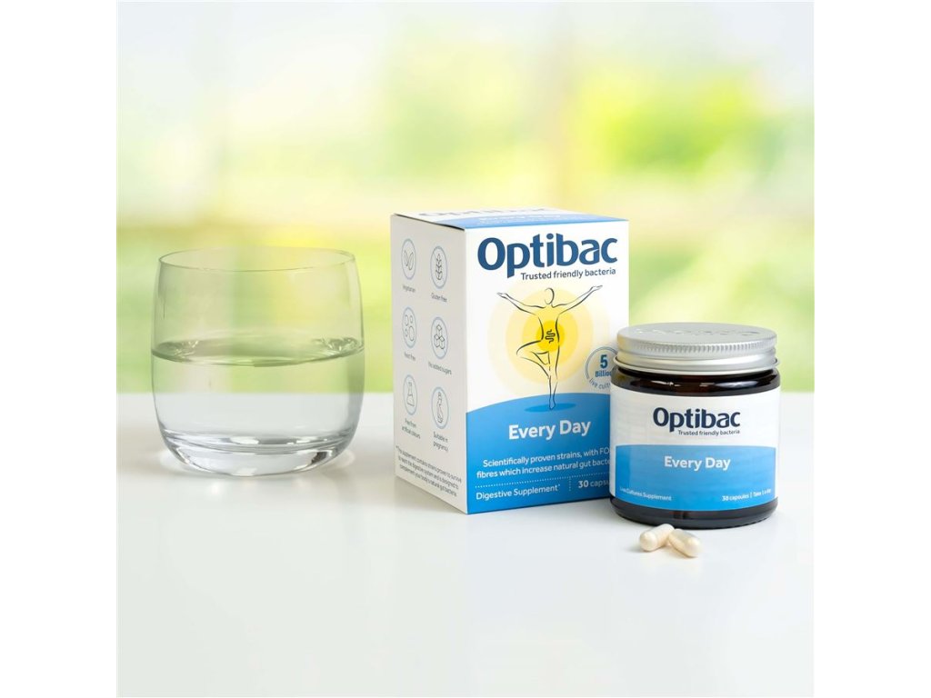 Optibac Every Day je doplněk stravy s obsahem komplexu vysoce kvalitních probiotik určeného pro každodenní podporu. Hodí se pro muže i ženy, lze jej užívat jako podporu obranného štítu, při vysoké zátěži, při rekonvalescenci, při užívání antibiotik nebo kdykoli, když cítíme, že náš zažívací trakt potřebuje pomoci. Every Day obsahuje celkem 6 druhů probiotických kultur z kmenů Lactobacillus, Bifidobacterium a Lactococus (celkem 5 miliard v 1 kapsli), u nichž byla u všech ověřena schopnost projít kyselým prostředím žaludku a dostat se až do střeva. Přidaná prebiotika (FOS = fruktooligosacharidy, 88 mg v 1 kapsli) pomáhají probiotikům v účinku.