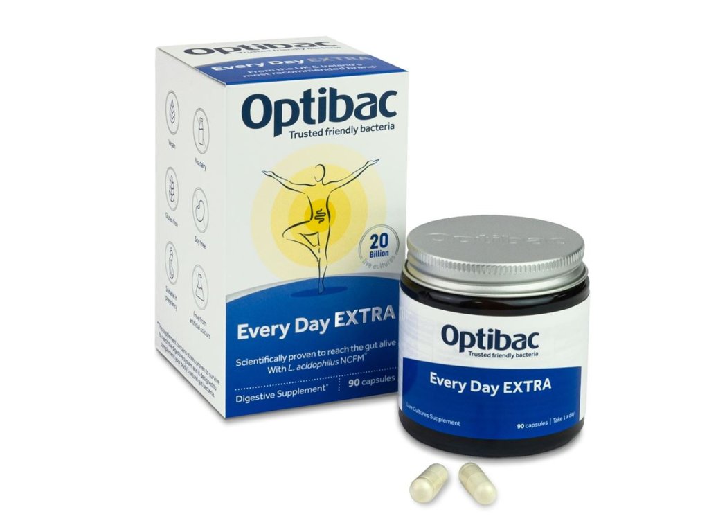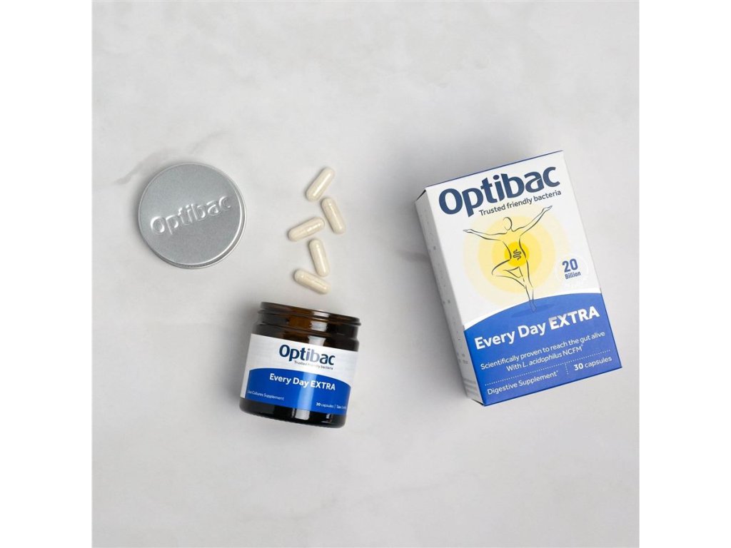 Optibac Every Day EXTRA je doplněk stravy s obsahem vysoké dávky komplexu vysoce kvalitních probiotik určeného pro každodenní podporu. Hodí se pro muže i ženy, lze jej užívat jako podporu obranného štítu, při vysoké zátěži, při rekonvalescenci, při užívání antibiotik nebo kdykoli, když cítíme, že náš zažívací trakt potřebuje pomoci. Every Day EXTRA obsahuje celkem 4 druhy probiotických kultur z kmenů Lactobacillus acidophillus NCFM®, Lactobacillus paracasei Lpc-37®, Bifidobacterium lactis BI-07®, Bifidobacterium lactis BI-04® v zesílené dávce - celkem 20 miliard v 1 kapsli. Proto se hodí pro podporu např. při náročné rekonvalescenci, při velkých obtížích apod. U všech obsažených probiotik byla ověřena schopnost projít kyselým prostředím žaludku a dostat se až do střeva.