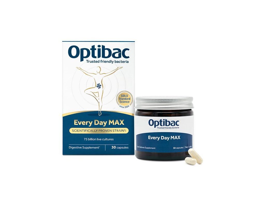 Optibac Every Day MAX je doplněk stravy s obsahem ultimátní dávky komplexu vysoce kvalitních probiotik určeného pro každodenní podporu. Hodí se pro muže i ženy, lze jej užívat jako podporu obranného štítu, při vysoké zátěži, při rekonvalescenci, při užívání antibiotik nebo kdykoli, když cítíme, že náš zažívací trakt potřebuje pomoci. Every Day EXTRA obsahuje celkem 4 druhy probiotických kultur z kmenů Lactobacillus acidophilus NCFM®, Bifidobacterium lactis BI-04® a Bifidobacterium lactis HN019 v ultimátní dávce - celkem 75 miliard v 1 kapsli. Proto se hodí pro podporu např. při náročné rekonvalescenci, při velkých obtížích apod. U všech obsažených probiotik byla ověřena schopnost projít kyselým prostředím žaludku a dostat se až do střeva.