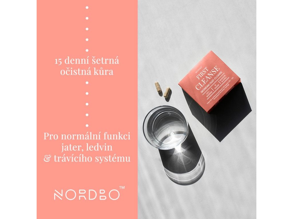 Nordbo First Cleanse přináší úplně nový standard v doplňcích s bylinnými očistnými kůrami. Celkem 16 (!) účinných rostlinných složek rozdělených na ranní a večerní dávku přináší komplexní očistu pro celé tělo a pro nejvíce zatížené oblasti, které se starají o zpracování odpadních látek. Látky obsažené ve First Cleanse pracují nepřetržitě - podporují vylučování toxinů z těla, podporují přirozenou funkci zažívání (zároveň nejsou laxativní) a aktivují přirozená detoxikační centra organismu. Nordbo First Cleanse poskytuje šetrnou kůru určenou pro ty, kteří s detoxem začínají a nebo mají citlivé zažívání.