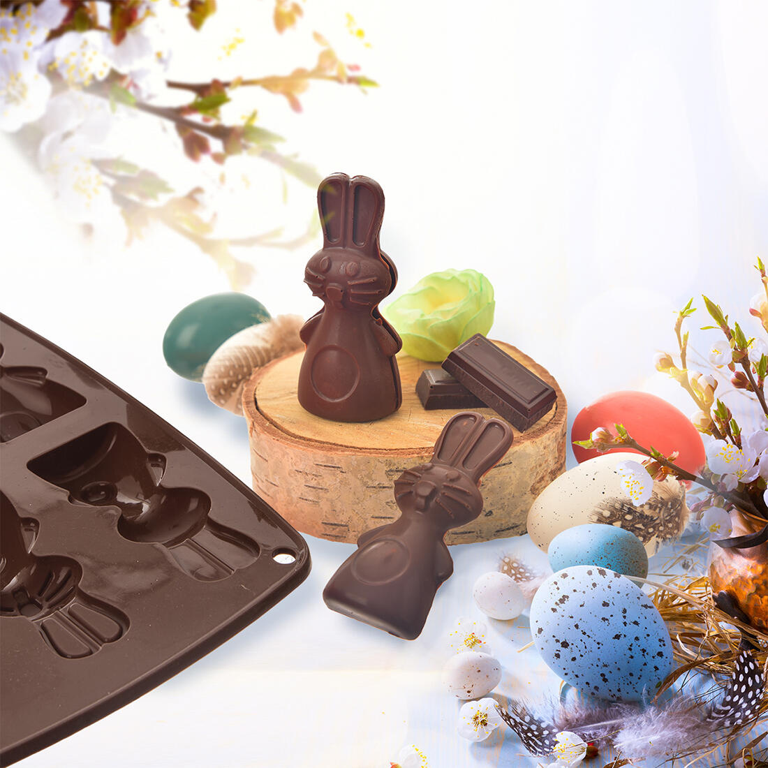 Forma na čokoládu ZAJÍČCI, 6 ks, 24 x 18 x 2 cm, silikon HN.