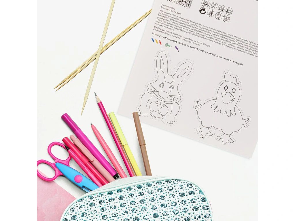 Originální balení: na zadní straně papírové karty, na které je forma připevněna, jsou pro děti připraveny obrázky zvířátek, které si mohou dle vlastní fantazie vybarvit, vystřihnout, nalepit na špejli a hrát s nimi divadlo.