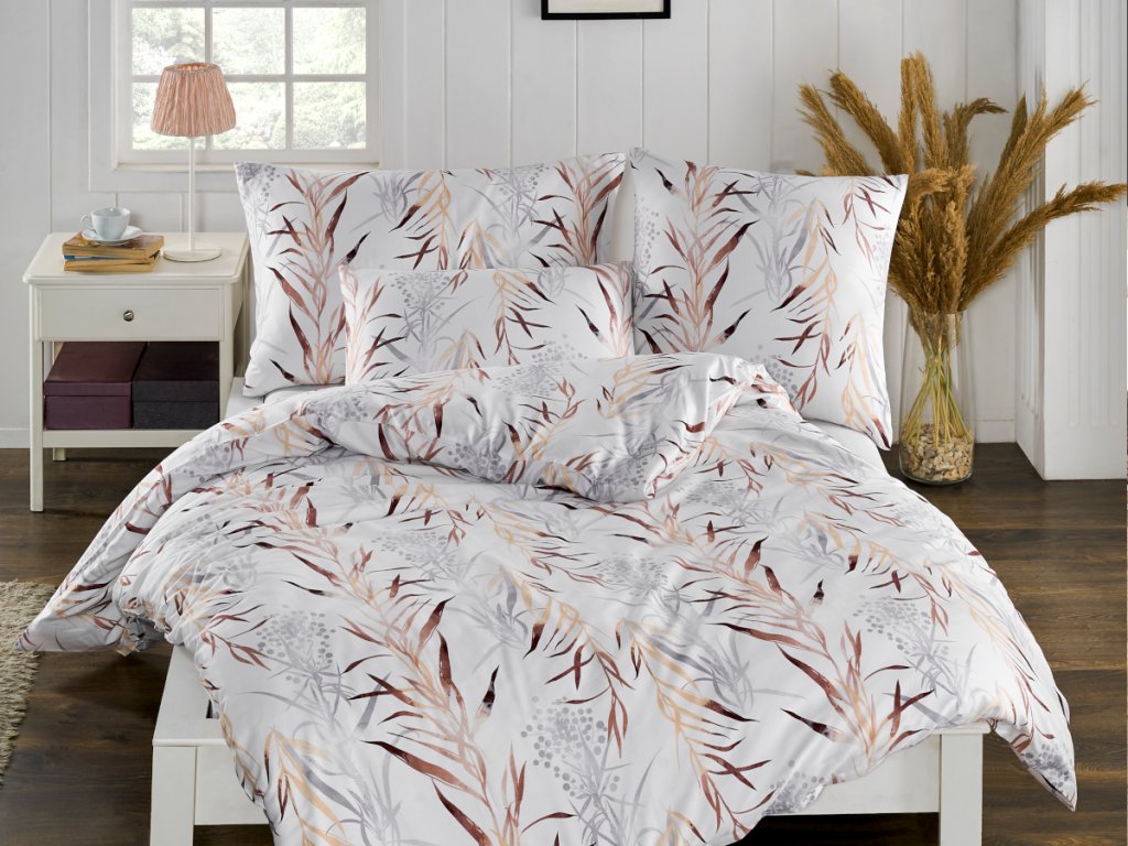 Luxusní saténové povlečení Gracie s přírodním motivem v jemném tónu. Doporučujeme prostěradlo v šedé, béžové,hnědé nebo smetanové barvě.
