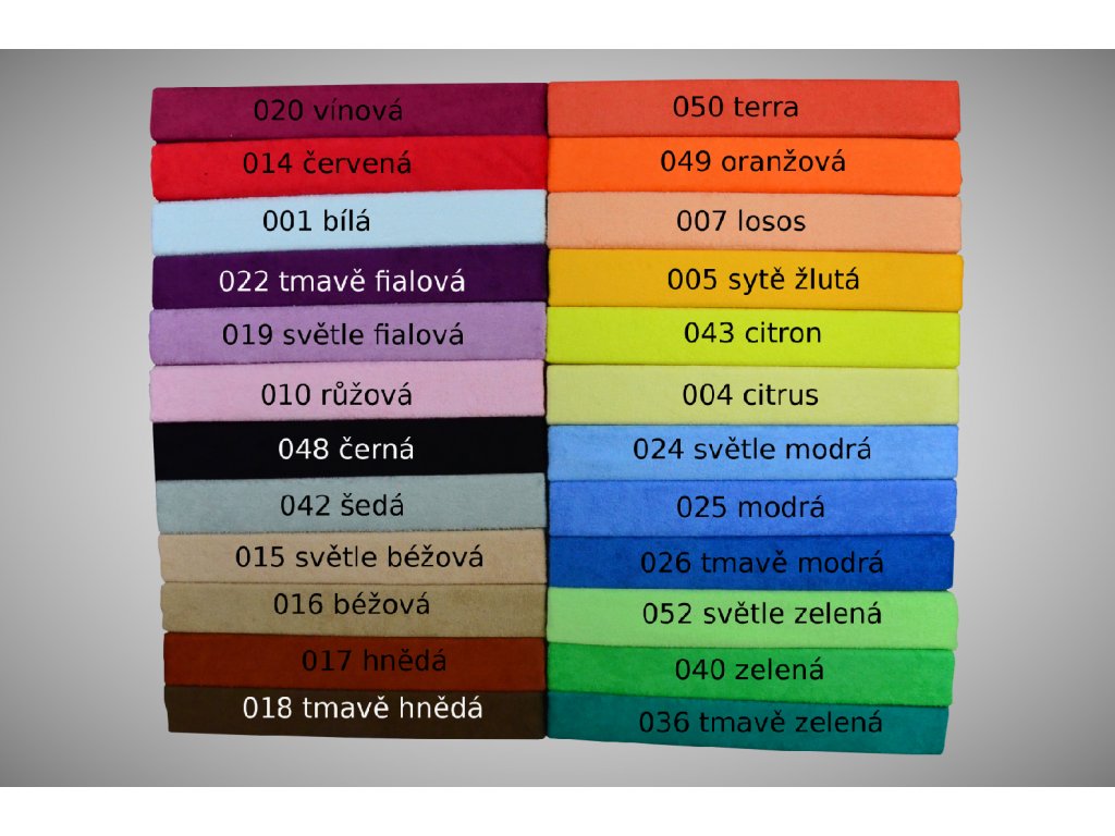 Vybírat můžete z několika rozměrů. Nabízíme prostěradla do dětské postýlky a několik rozměrů na velkou postel. Uvedený rozměr je vždy rozměr lehací plochy matrace. Prostěradlo má navíc rohy 25 cm, dobře se tedy napne na matraci do max. výšky 16 cm. Dětské rozměry mají navíc roh 15 cm, dobře se napnou na matraci do výšky 10 cm.