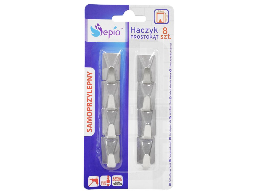 Háček hranatý, samolepicí, nerez (8 ks).rozměry: 1,2 x 1,5 x 2,7 cm