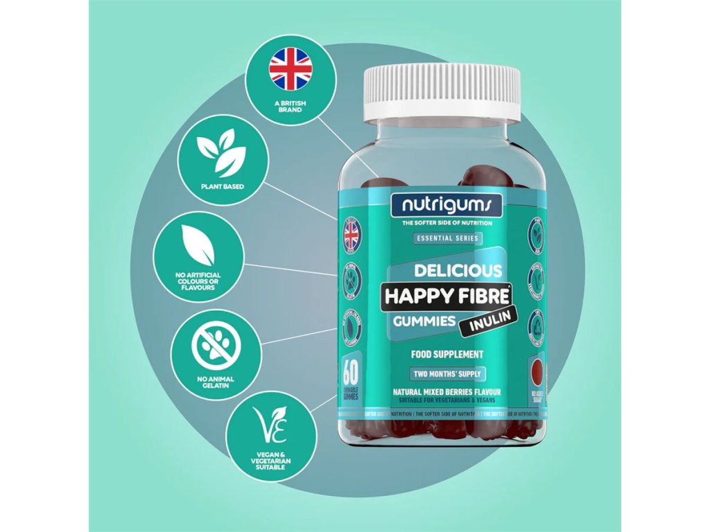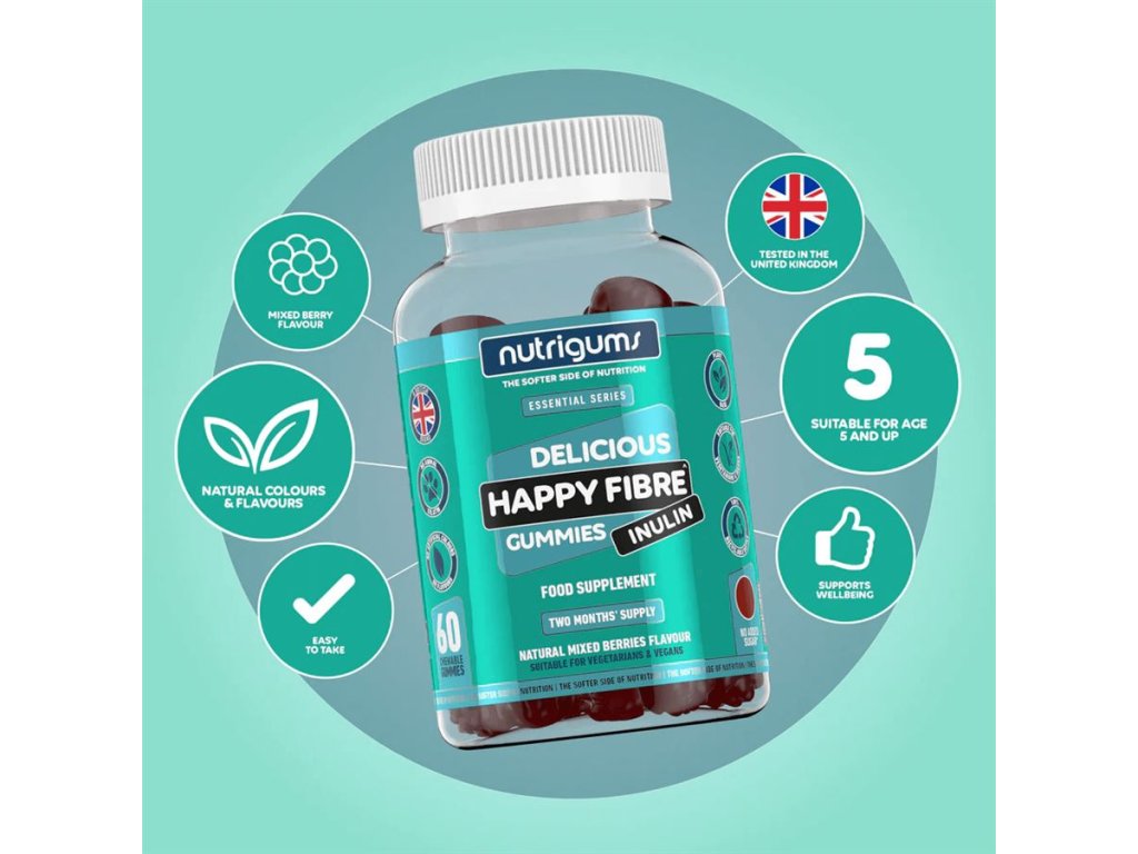 Želé s doplňky výživy nemusí být plná umělých sladidel a barviv! Jde si pochutnat i bez syntetických látek. Želé Nutrigums® Happy Fibre má lahodnou přírodní příchuť jahoda a lehce se konzumuje. Tělu dodává všechny benefity vlákniny z kořene čekanky. Pomáhá při nepravidelném vyprazdňování, obtížném zažívání a podporuje mikrobiom.