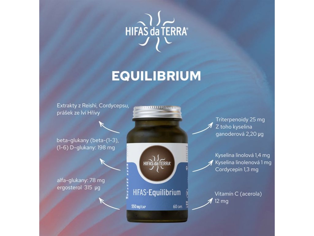 Equilibrium znamená rovnováha. HIFAS Equilibrium obsahuje unikátní směs bioaktivních složek z Reishi, Hericia (Lví hřívy) a Cordycepsu. Obsahuje také přírodní vitamín C pro zvýšení biodostupnosti ostatních složek. Řada Hifas Functionals byla vytvořená podle hesla Leonarda da Vinciho "Jednoduchost je ta nejvyšší sofistikovanost". Je určená pro přímou a co nejsnadnější zacílenou pomoc.