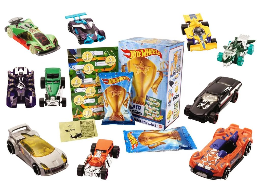 Mystery box angličáky Hot Wheels®! Balíčky Hot Wheels® Angličák za odměnu jsou skvělým způsobem, jak odměnit dobré chování dětí nebo individuální úspěchy, a to s 10 samostatně zabalenými angličáky Hot Wheels® v měřítku 1:64. Děti si zamilují úžasný styling a neomezenou zábavu, kterou tyto angličáci přinášejí. Každá sada Hot Wheels® Angličák za odměnu obsahuje 10 angličáků úhledně zabalených do neprůhledných obalů, které také obsahují vítěznou zlatou nálepku. Každé balení se prodává samostatně, v závislosti na dostupnosti. Barvy a dekorace se mohou lišit.
