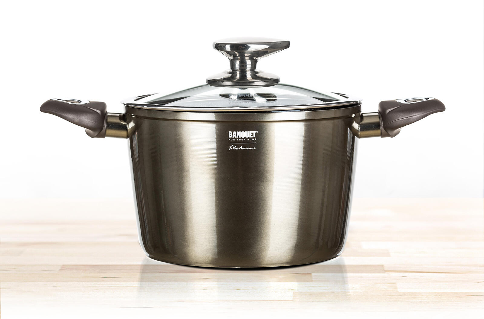 Hliníkový litý kovaný hrnec se skleněnou poklicí METALLIC PLATINUM s nepřílnavým povrchem.