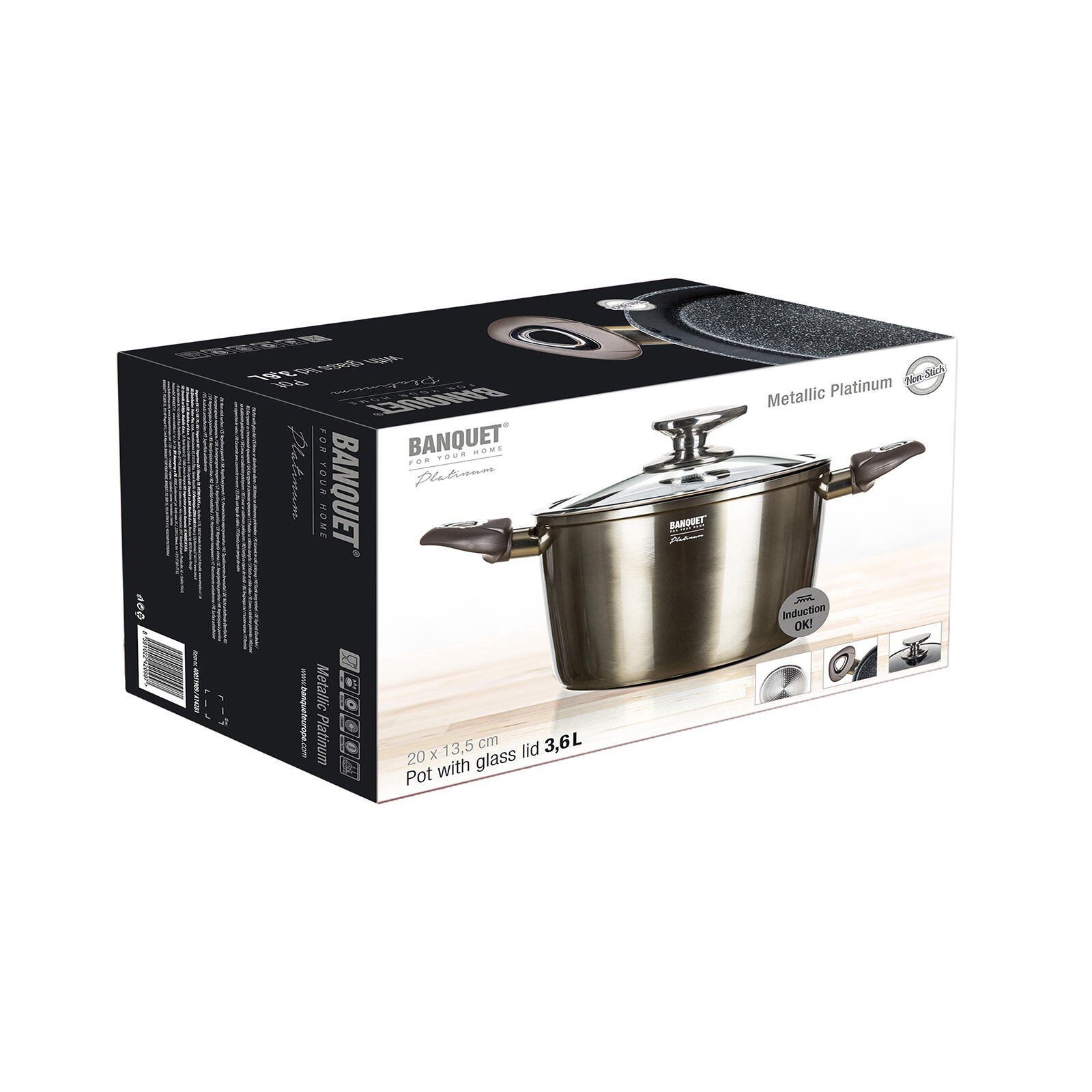 Hrnec 20 x 13,5 cm, 3,6 l, nepřilnavý povrch, METALLIC PLATINUM, se skl. poklicí.