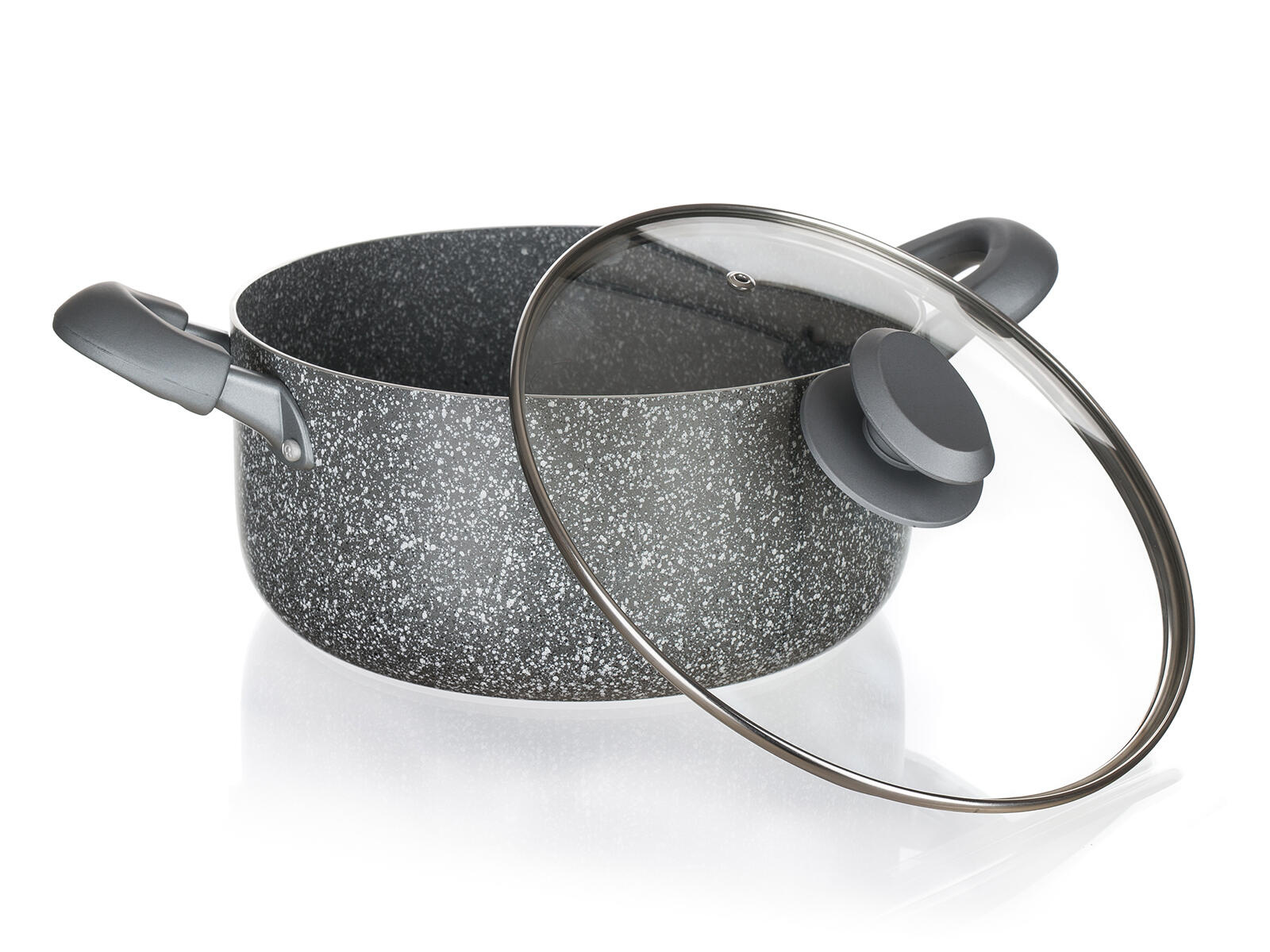 Hrnec 24 x 11 cm, nepřilnavý povrch, GRANITE, se skl. poklicí.