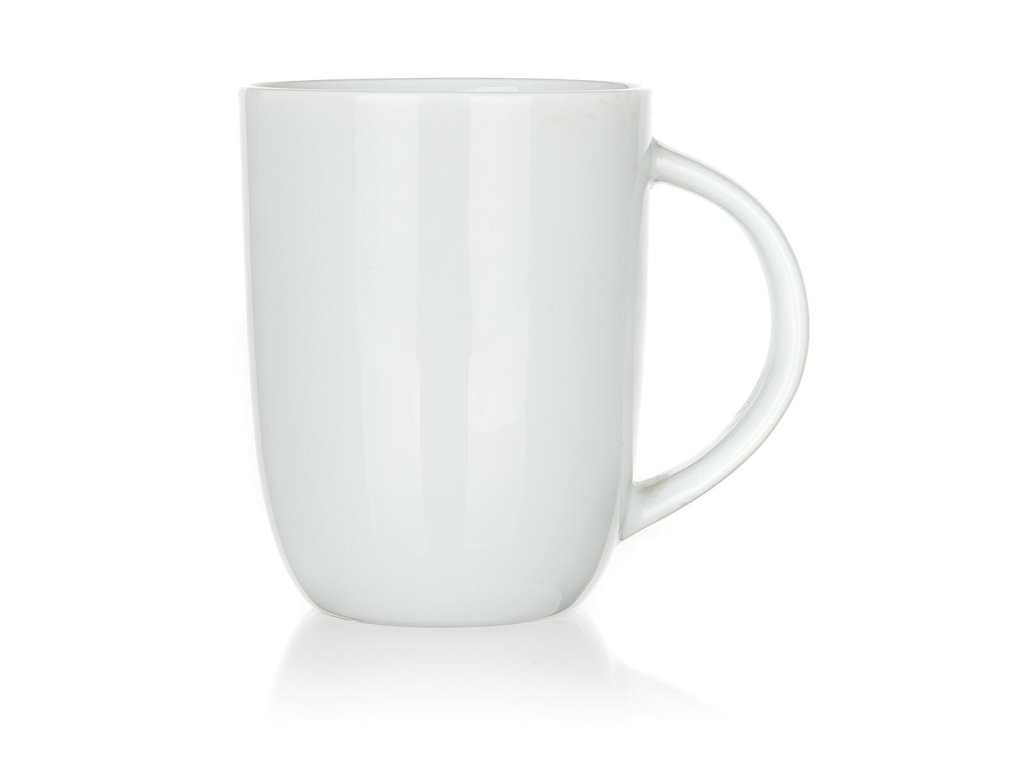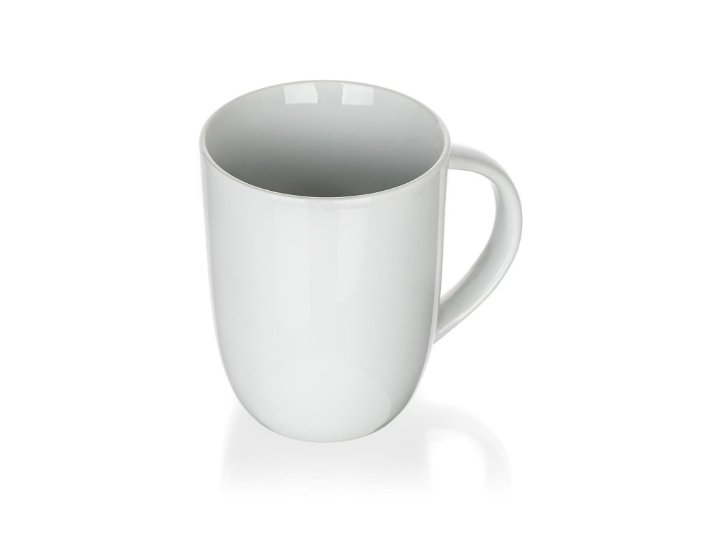 Hrnek v bílé barvě, je vyrobený z keramiky.