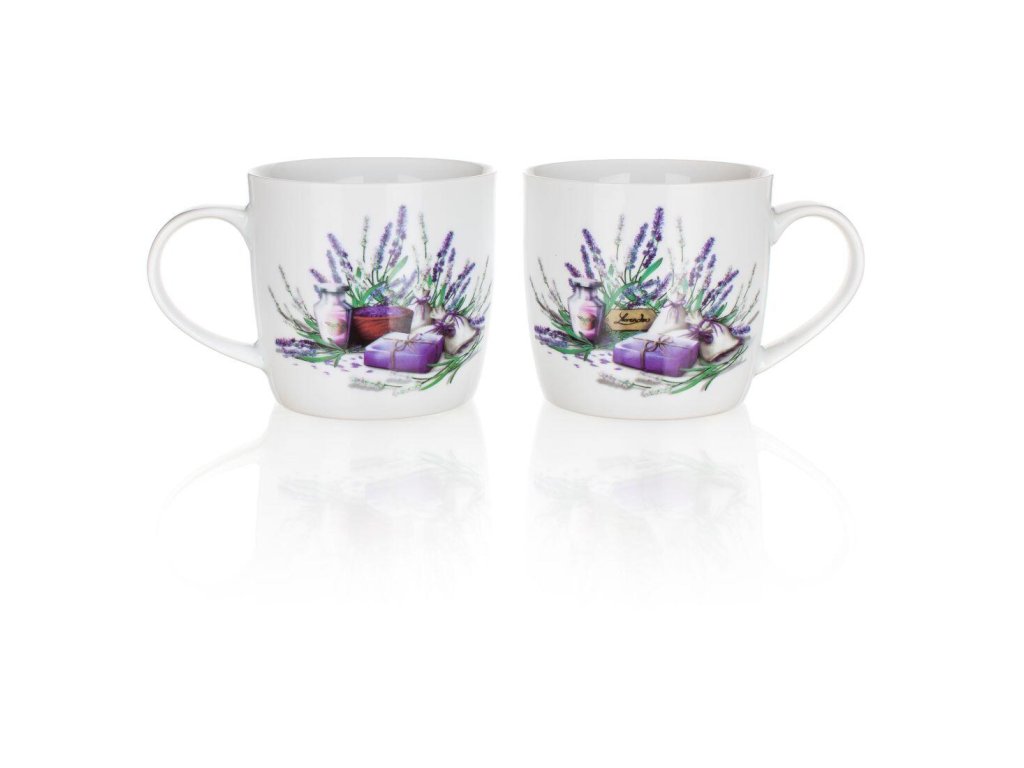 V sadě jsou vždy 2 stejné bílé hrnky s dekorem LAVENDER na obou dvou stranách.