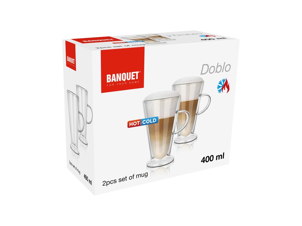 Hrnek 400 ml, dvoustěnný, DOBLO, skleněný (2 ks).