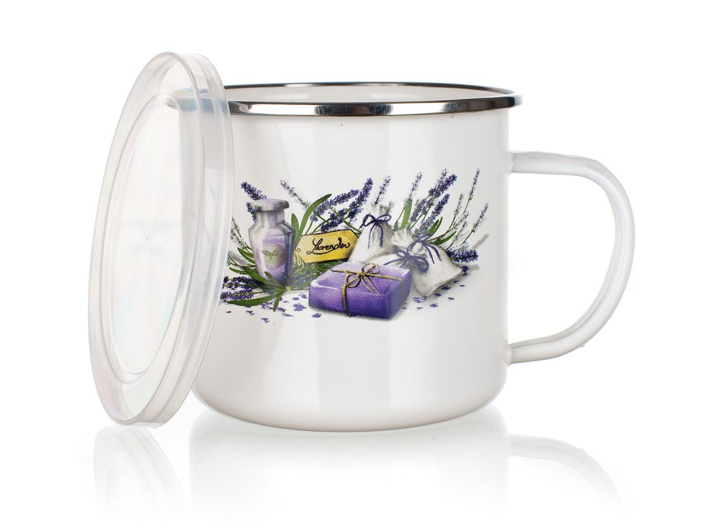 Smaltovaný hrnek LAVENDER 0,5 l s plastovým víčkem.