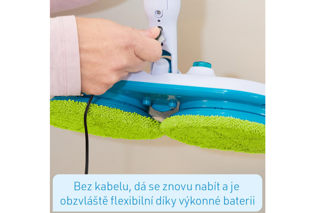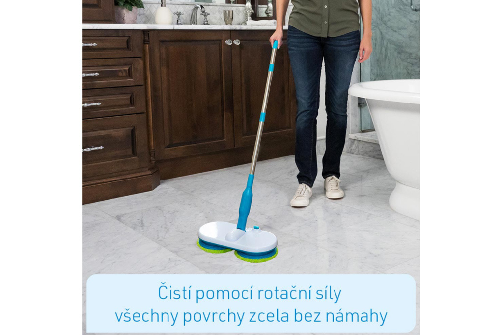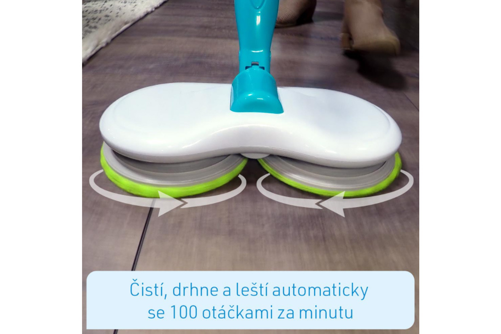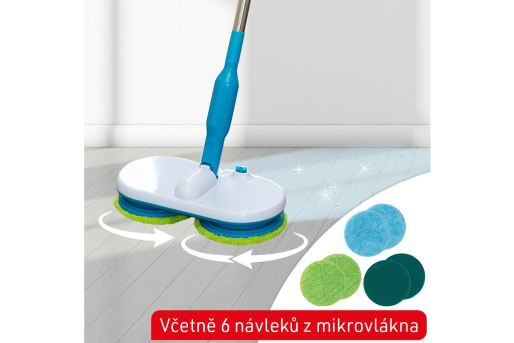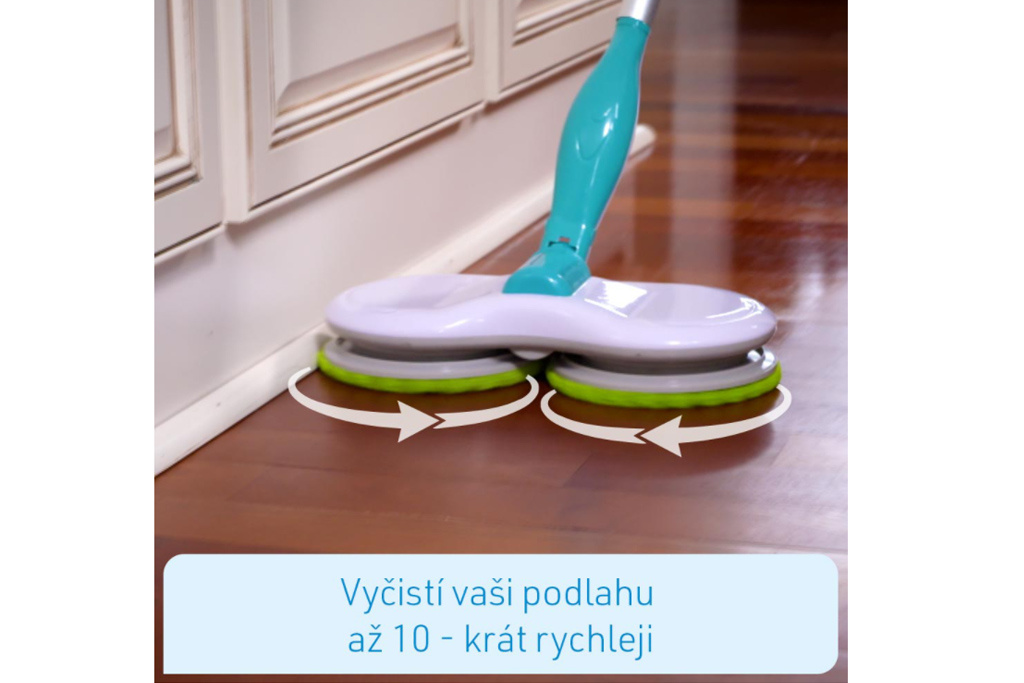 Čištění podlahy je špinavá a únavná noční můra! Ruce a záda jsou namáhány a zbavit se špíny a nebezpečných mikrobů trvá celou věčnost! Odstraňte špínu, choroboplodné zárodky a bakterie rychle a snadno - se zcela novým čistícím mopem Hurricane! Bezkabelový mop s lehkým dvojitým otáčením udělá všechnu práci za vás! Dvě hlavy mopu vyčistí vaši podlahu s dvojnásobným výkonem a až 100 otáčkami za minutu! Speciální opakovaně použitelné návleky z mikrovlákna sbírají nečistoty pomocí tisících vláken a bezpečně ji zafixují! A co je nejlepší: rotující hlavy se pohybují jako vrtule a mop klouže téměř sám! Absolutně bez námahy! Díky Hurricane Floating Mop je čištění podlahy hračkou! Stačí nastříkat obyčejnou vodu z vodovodu na výkonné návleky z mikrovlákna! Nebo použijte dezinfekční prostředek, aby byl váš domov čistý a hygienický! Hurricane Floating Mop je bezdrátový, s výkonným elektromotorem a dobíjecí lithium-iontovou baterií, která vydrží až 90 minut! Dostatečně dlouhá doba na to, abyste mohli vyčistit jeden pokoj po druhé, a to pouze na jedno nabití. Otočná hlava flexibilně čistí všechny překážky a vejde se dokonce i pod váš nábytek! Ideální i vertikálně! Například na schody nebo zaprášené soklové lišty! Hurricane Floating Mop vyčistí vše až 10krát rychleji! Ideální na jakýkoliv tvrdý povrch, ať už keramickou, mramorovou, dřevěnou, laminátovou nebo laminátovou podlahu. Všechno bude zářivě čisté! S novým motorizovaným Hurricane Floating Mop máte čisté hygienicky čisté podlahy během chvilky. Díky zcela nové technologii budete mít rychle a jednoduše nádherně čisté podlahy v celém vašem bytě. ORIGINÁL známý z TV! Extrémní úspora času a energie - bez námahy vyčistíte všechny povrchy pouze pomocí rotační síly Čistí, drhne a leští automaticky při 100 otáčkách za minutu Akumulátorový, dobíjecí a mimořádně flexibilní díky výkonné baterii Ideální na všechny typy podlah a povrchů jako například dlažby, parkety, linoleum, laminát a jiné Vyčistí podlahu až 10krát rychleji ve srovnání s běžnými pomůckami na čištění podlah Čistí také citlivé povrchy, jako jsou sprchové stěny, vany a okna Multifunkční: Dá se použít vertikálně i horizontálně 90 minut plné čisticí síly - jedno nabití baterie postačí na celý dům Štíhlý design - ideální pro těžko dostupná místa Mimořádně lehké, dá se ovládat jednou rukou Včetně 6 pratelných čistících návleků (návleky na odolné nečistoty, návleky z mikrovlákna na běžně znečištěné podlahy a návleky na leštění podlah) Informace o produktu: Mop: DxŠxV: 31x15x123 cm Průměr destiček: 15,5 cM Délka kabelu 1,80m Materiálové složení podložek: Lešticí podložky: 80% polyester, 20% nylon, polyuretanová houba Podložky z mikrovlákna: 80% polyester, 20% nylon, polyuretanová houba Podložky pračky: 100% polyester Obsah balení: 1x Hurricane Floating Mop 2x Návlek na leštění 2x Návlek na drhnutí 2x Návlek z mikrovlákna