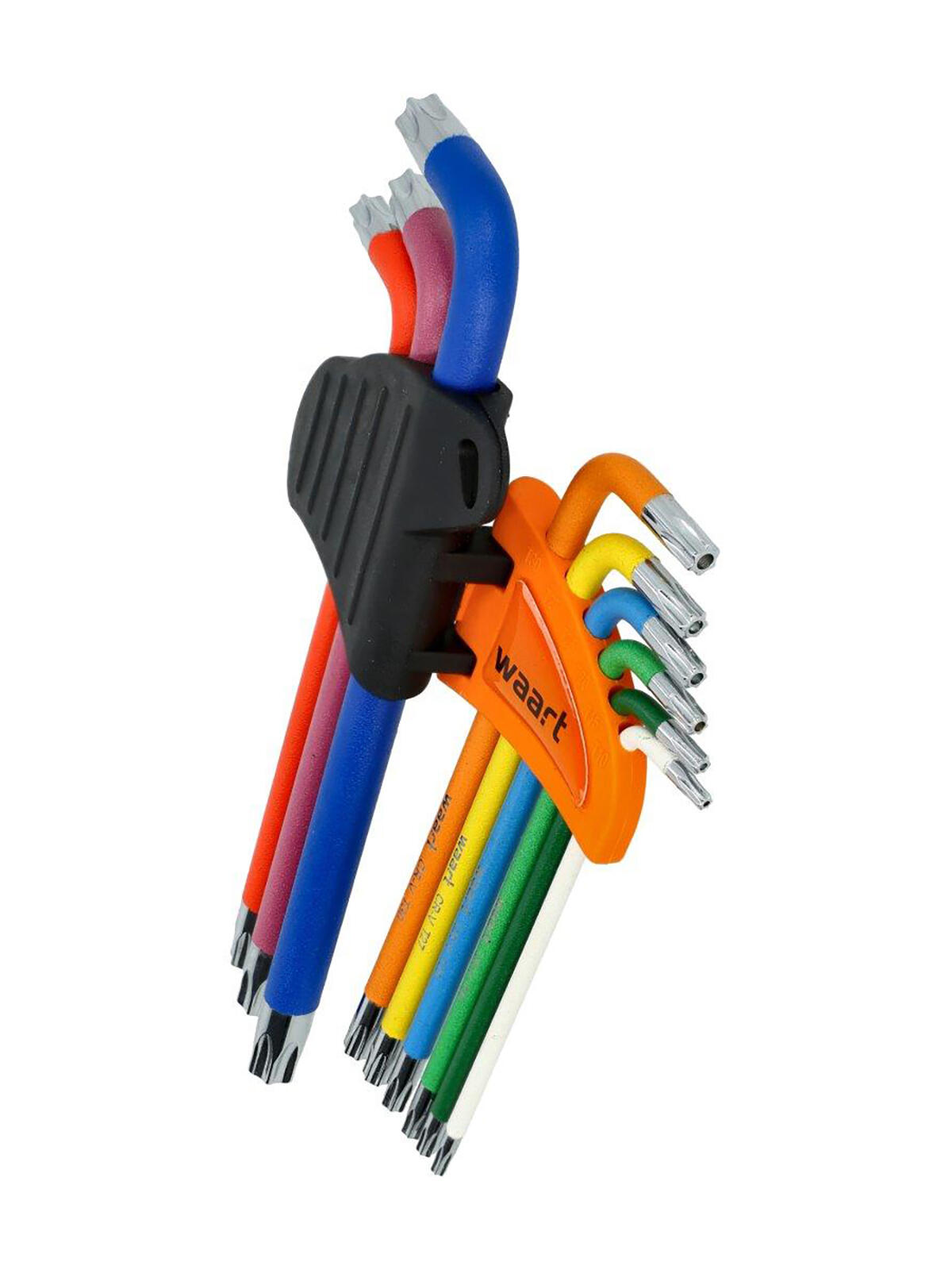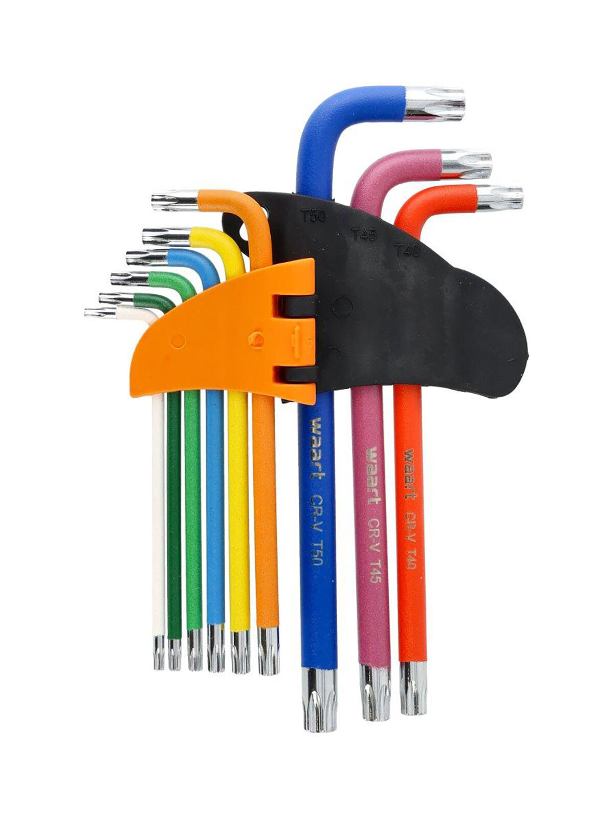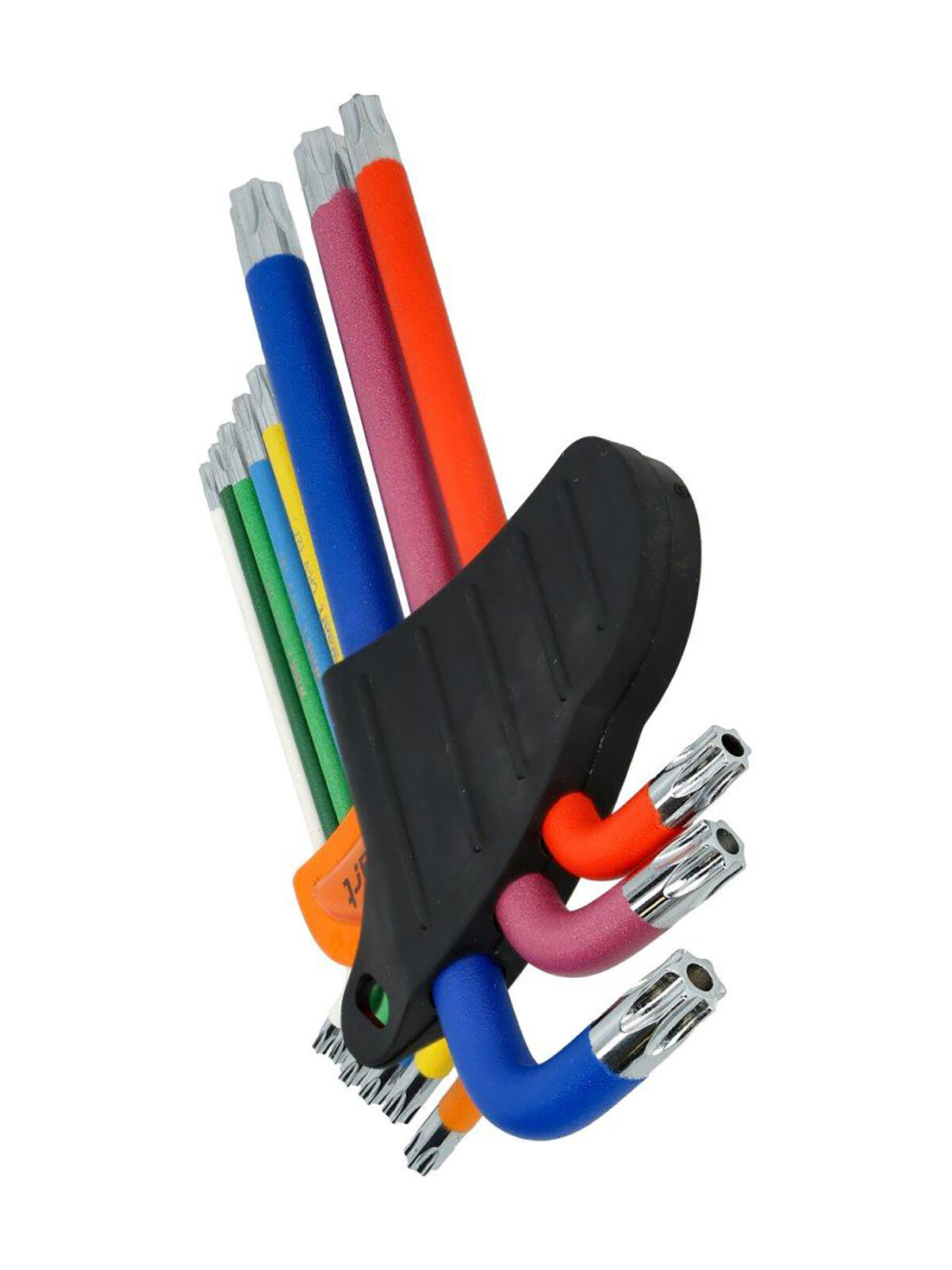 Sada 9 klíčů Torx, s otvorem a magnetem, ve velikostech od T10 do T50.