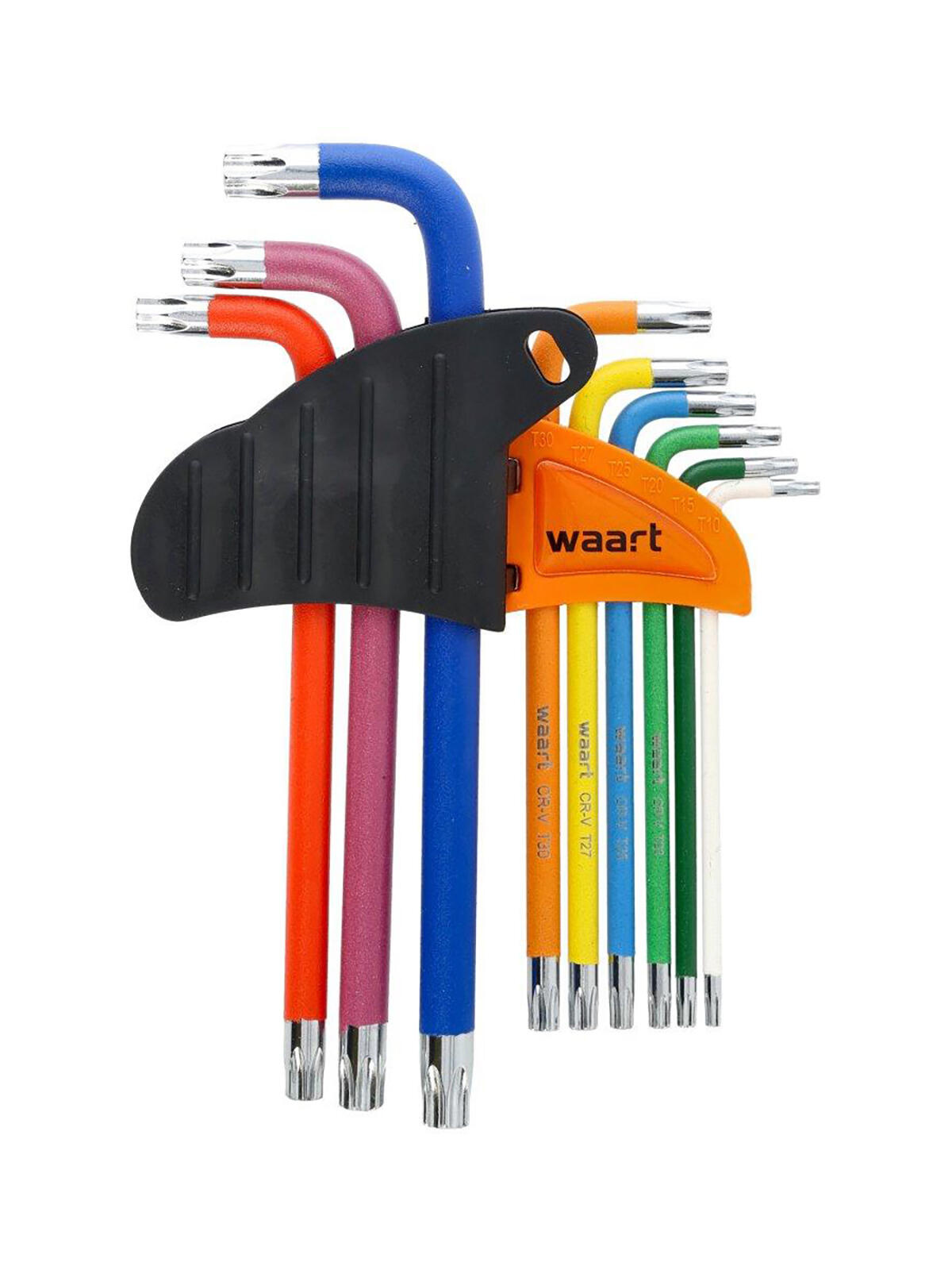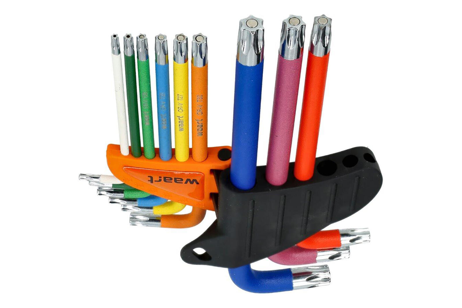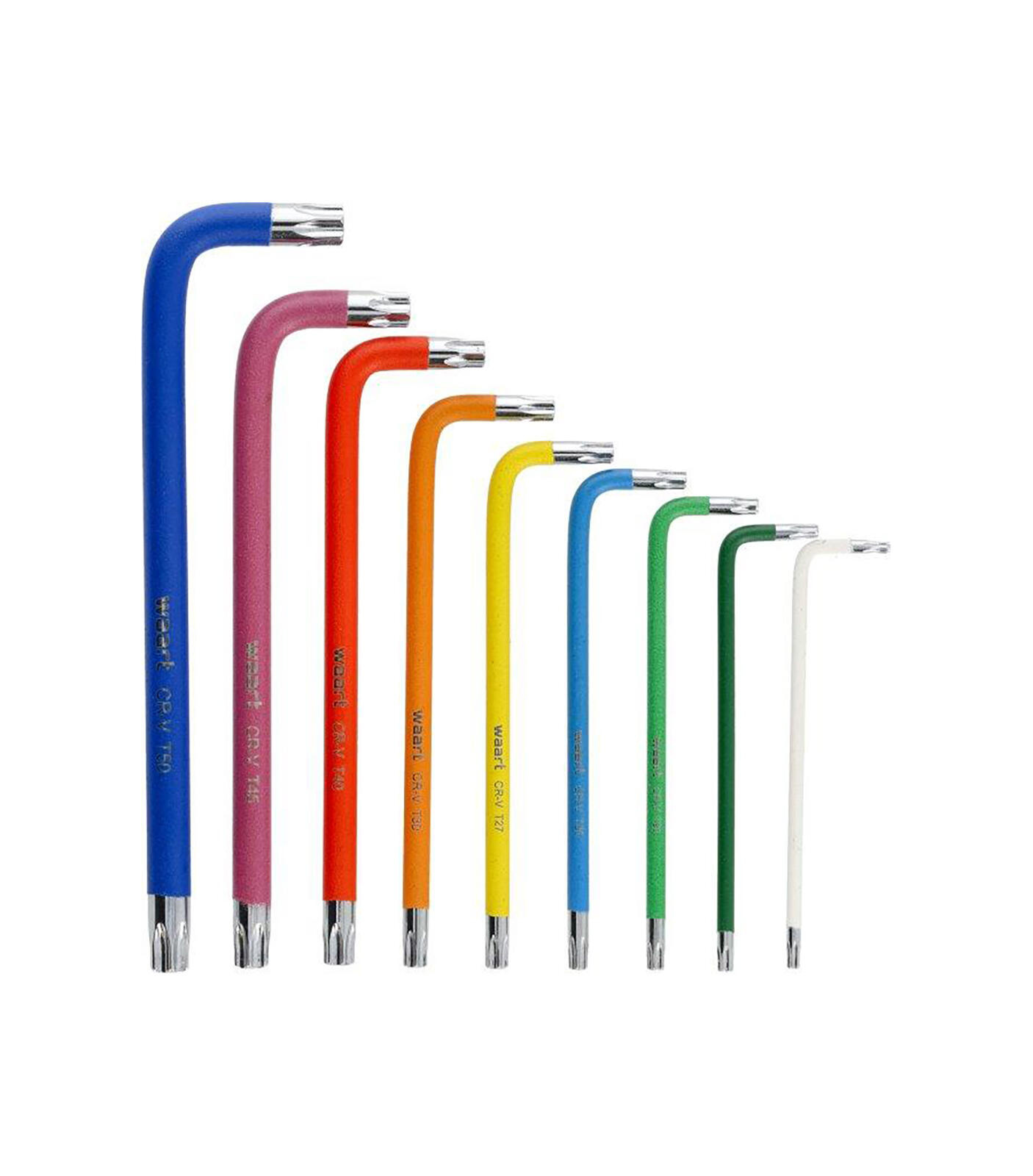 Sada 9 klíčů Torx, s otvorem a magnetem, ve velikostech od T10 do T50.