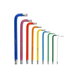 Každý klíč je barevně označen, což usnadňuje rychlou identifikaci správné velikosti.