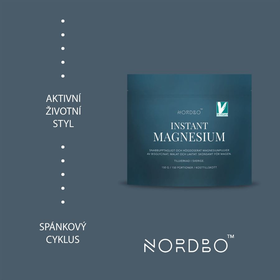Nordbo Instant Magnesium obsahuje tři organické (chelátová vazba), biologicky vysoce dostupné formy hořčíku. Bysglicinát hořečnatý obsahuje hořčík vázaný na aminokyselinu glycin, jablečnan hořečnatý (malát) obsahuje hořčík vázaný na kyselinu jablečnou a laktát hořečnatý obsahuje hořčík s laktátem. Všechny tři nosiče hořčíku jsou organické a pro tělo velmi důležité: glycin pro celkovou regeneraci, malát pro tvorbu buněčné energie a laktát pro normální činnost srdce.