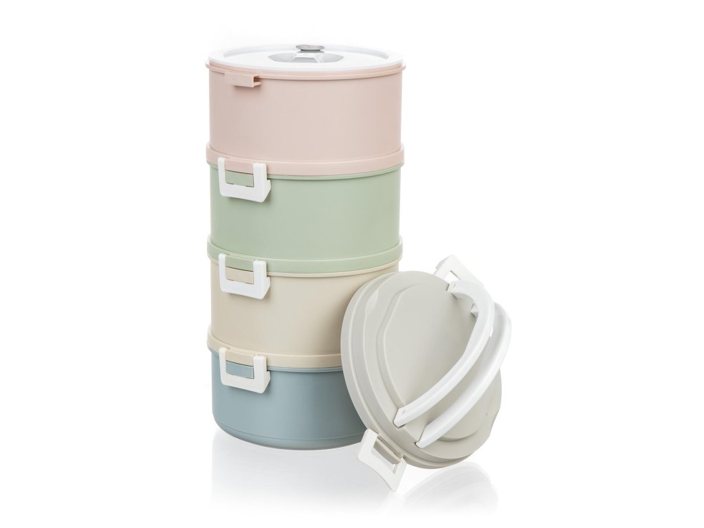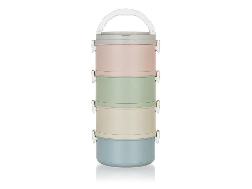 Jídlonosič se skládá ze čtyř dóz (každá s víkem, aroma knobem a silikonovým těsněním) a vrchního víka s praktickým madlem pro přenášení.