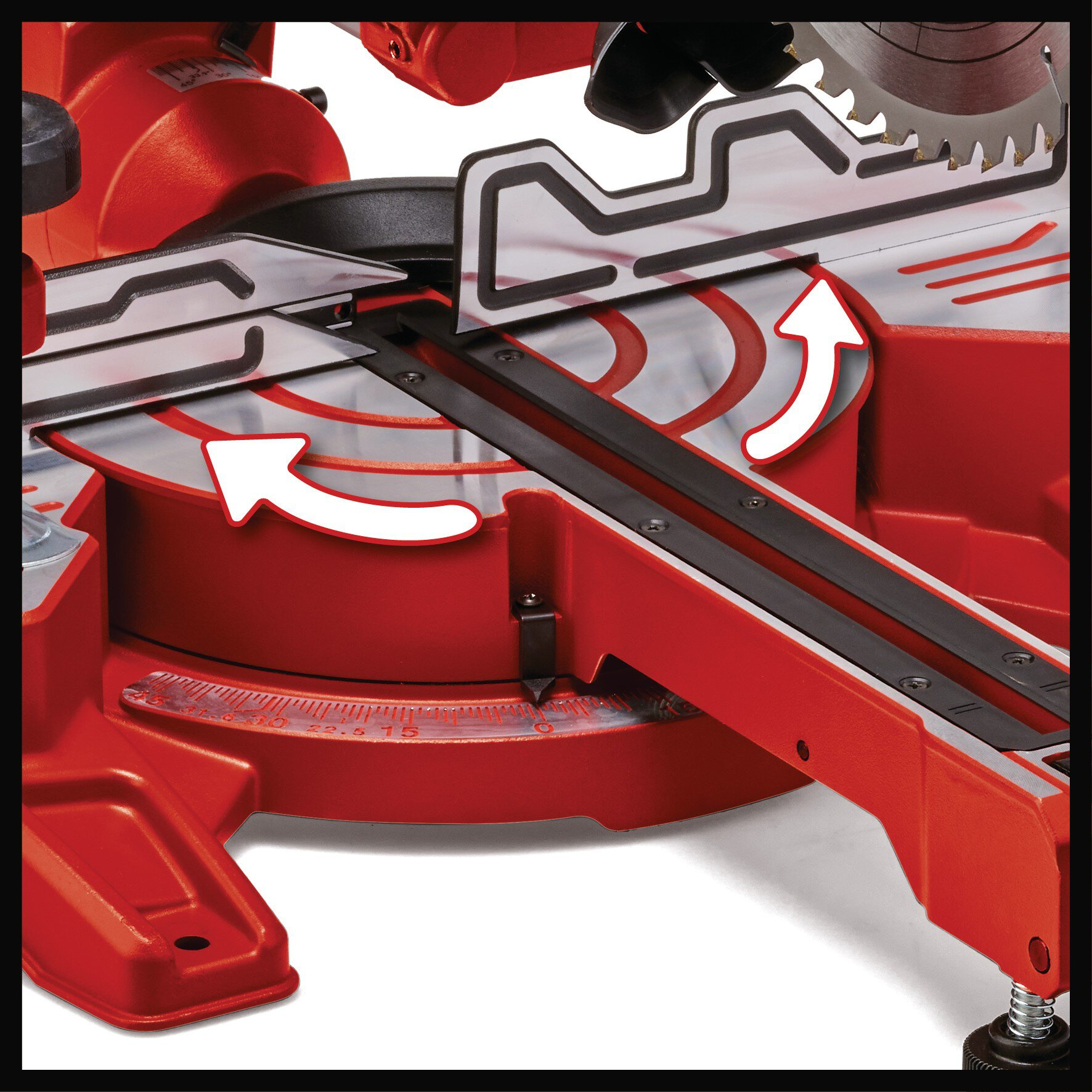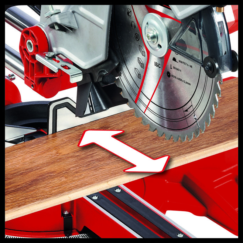 Ambiciózní kutilský nadšenec je díky pokosové pile s pojezdem Einhell TC-SM 254 ideálně vybaven pro náročné práce v domácnosti, v dílně nebo v garáži. S výkonem 1 900 W má pilový kotouč (vnější 254 x vnitřní průměr 30) dostatek síly k proříznutí materiálu, na kterém pracujete. Tato robustní pila má funkci hladkého tažení pro široké obrobky. Pro přesné úhlové řezy má otočný stůl s přesným nastavením úhlu. Stůl má také řadu uzamykacích poloh pro nejběžnější úhly. K dispozici jsou také snadno čitelné stupnice pro úhly a šířky. Pro dokonalé pokosové řezy lze kotouč naklonit doleva. Šířka záběru je až 305 milimetrů s nastavením 90 ° a až 215 milimetrů s úhlem 45 °. Práce vlastními silami je také usnadněna integrovaným laserem a praktickými podpěrami pro delší obrobky vlevo a vpravo. K zajištění obrobků slouží praktické upínací zařízení. Vysoce kvalitní, robustní pilový kotouč z tvrdokovu poskytuje dokonalé řezy a lze jej snadno vyměnit pomocí aretace vřetena. Za pilovým kotoučem je také sběrač prachu pro účinnější odstraňování pilin. Dodávané připojení odsavače má průměr 36 milimetrů nebo lze alternativně použít dodaný sáček na prach a piliny.