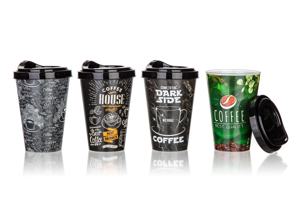 Plastový kelímek COFFEE je k dispozici v několika dekorech.