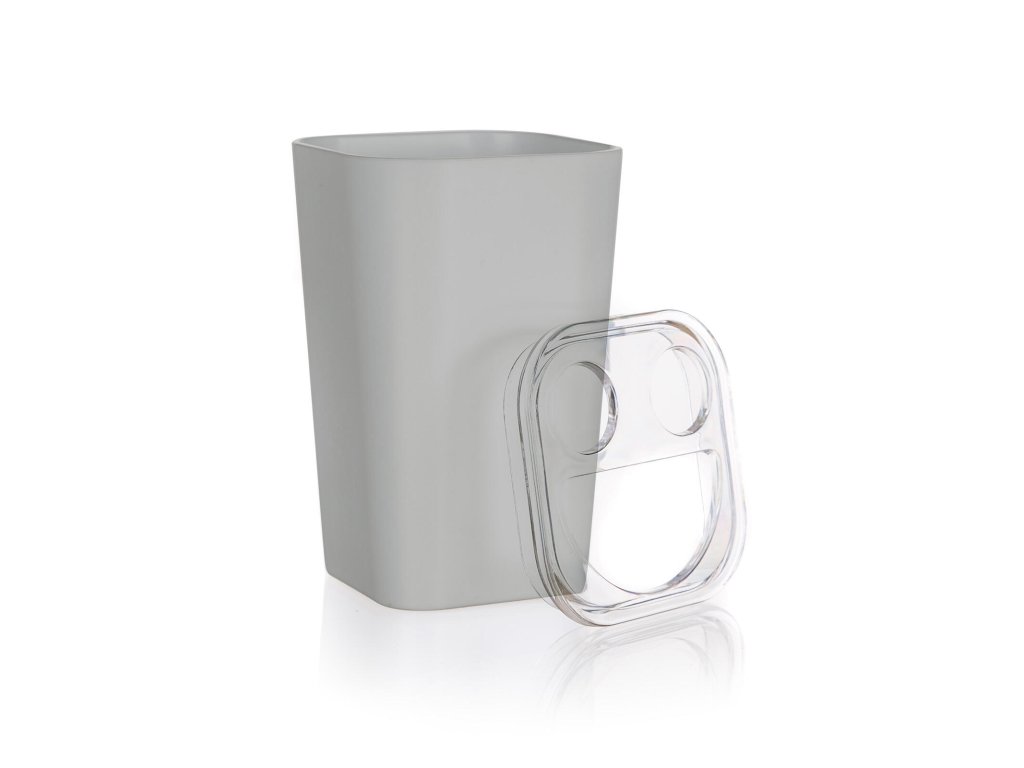 Plastový kelímek na kartáčky s praktickým dělítkem, který zaujme svým jednoduchým nadčasovým designem, který bude slušet každé koupelně.