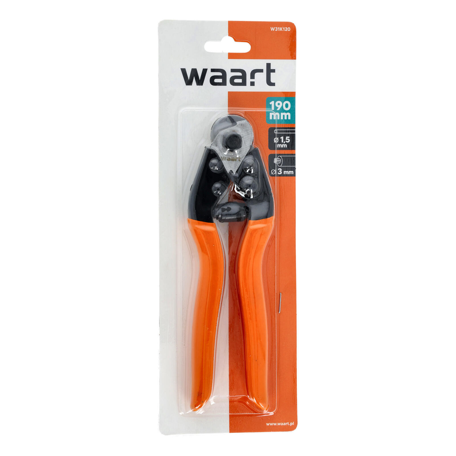 Řezačka má celkovou délku 190 mm, rukojeti jsou potaženy odolným PVC materiálem a čepele jsou vyrobeny z oceli o tvrdosti HRC56-62 pro efektivní řezání.